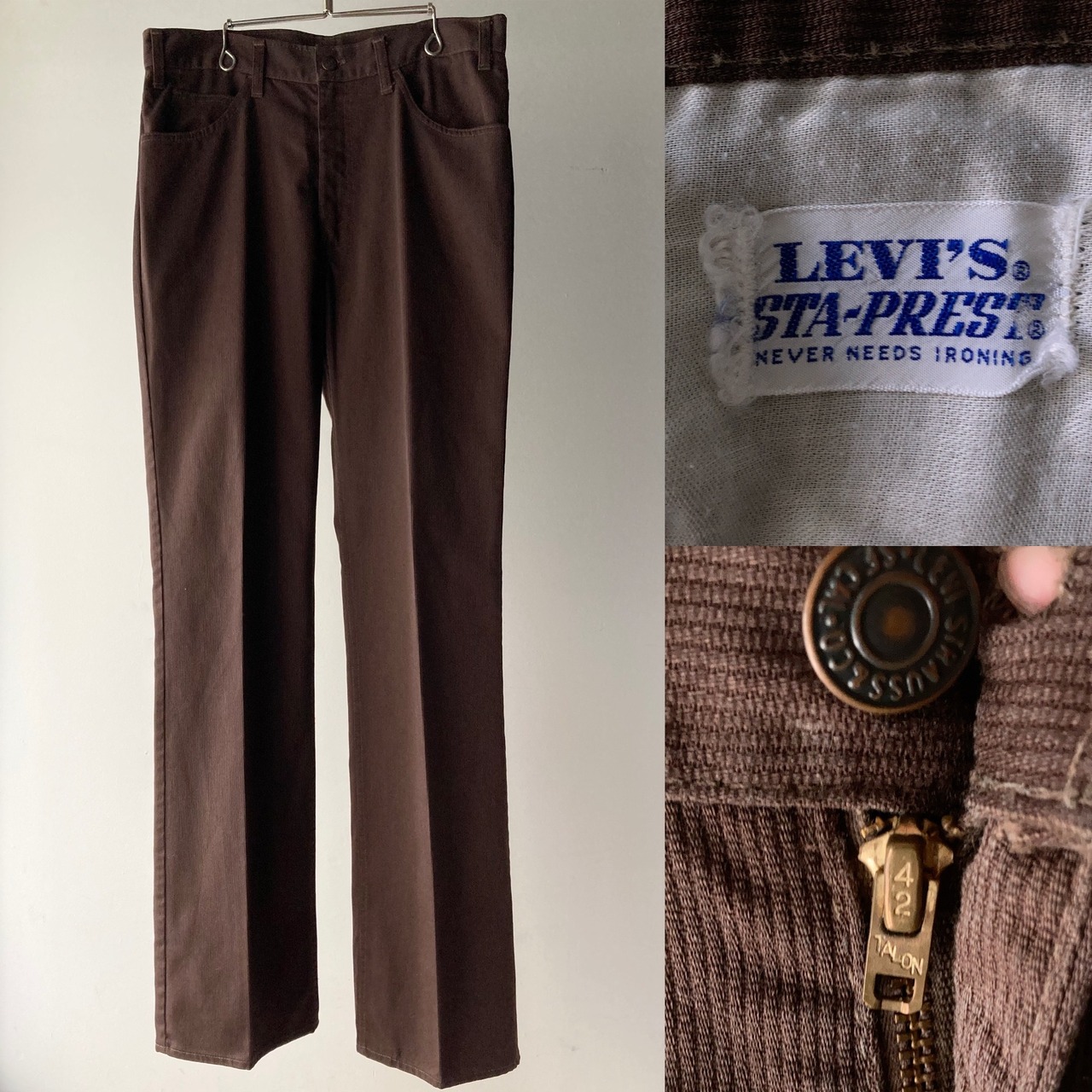 70's LEVI'S STA-PREST 517 ピケ ブーツカットパンツ ブラウン【0716A65】