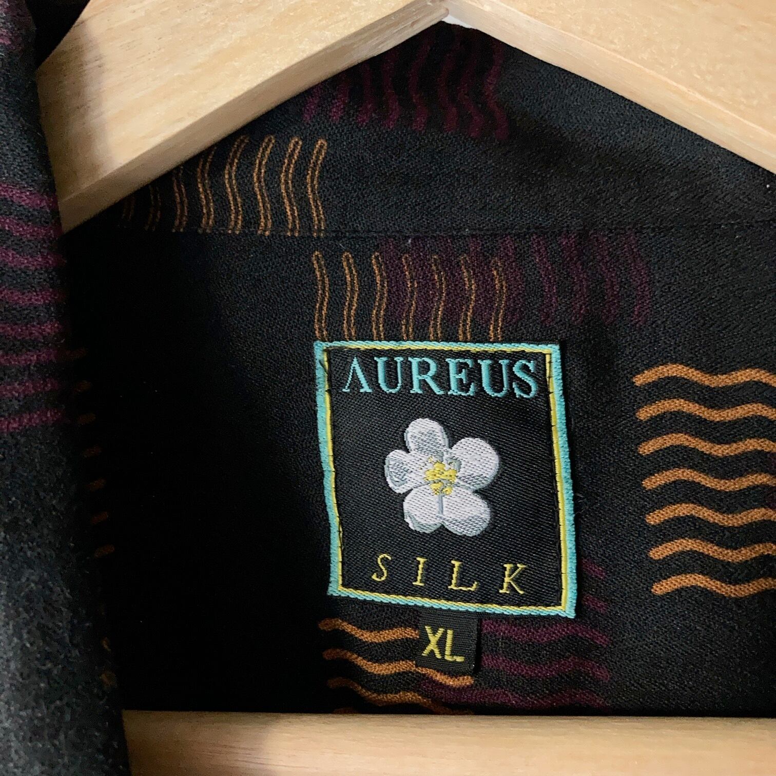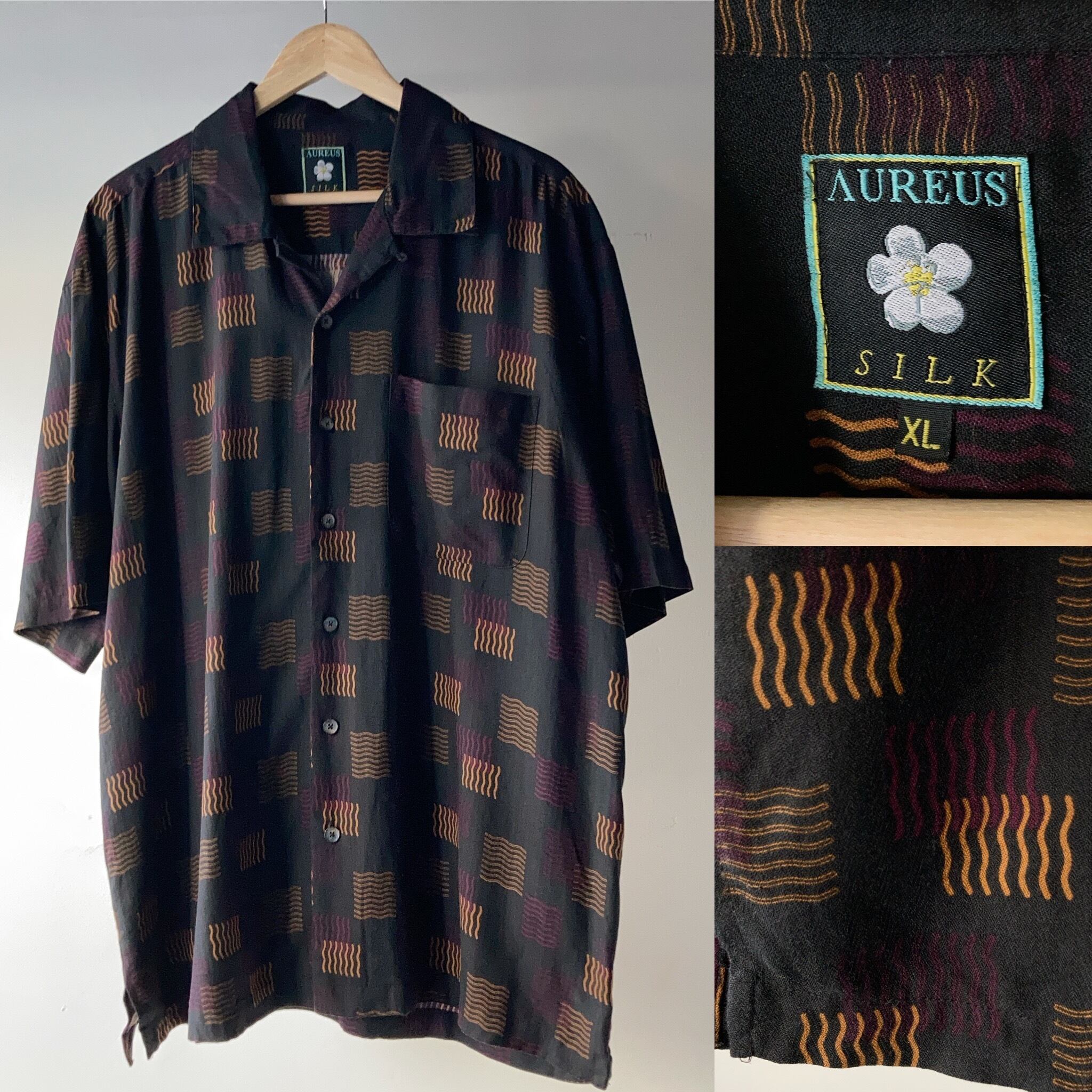 総柄 ブラックシルク S/Sオープンカラーシャツ SIZE XL【0726A18】