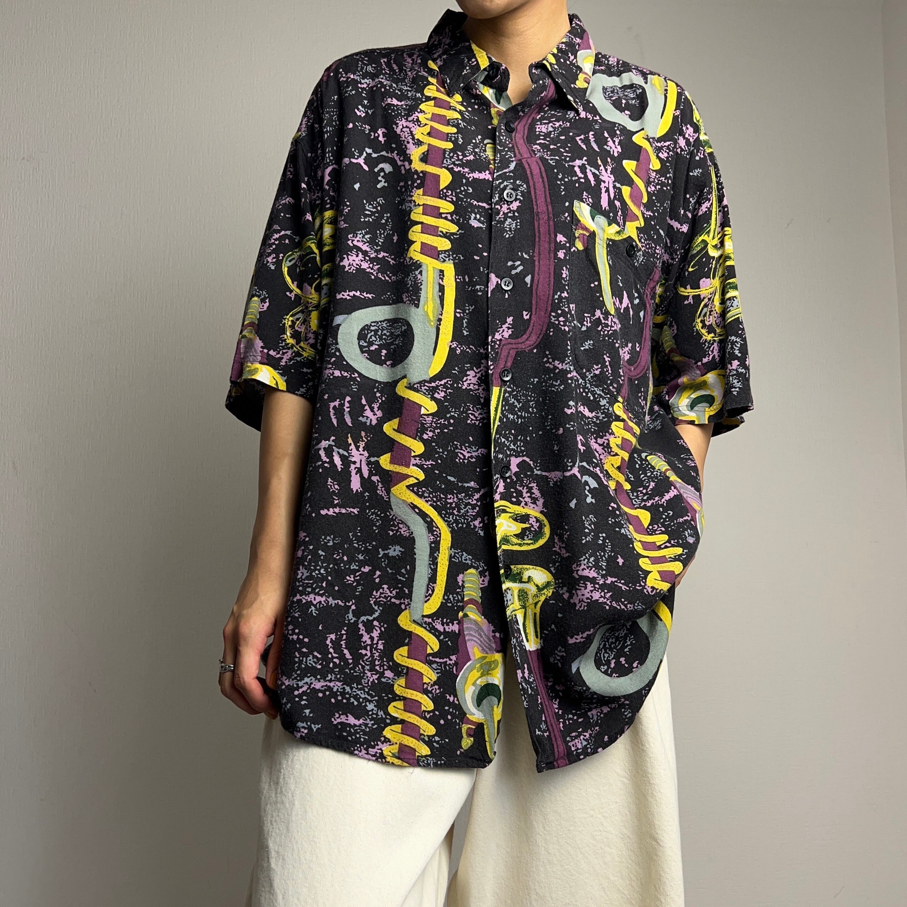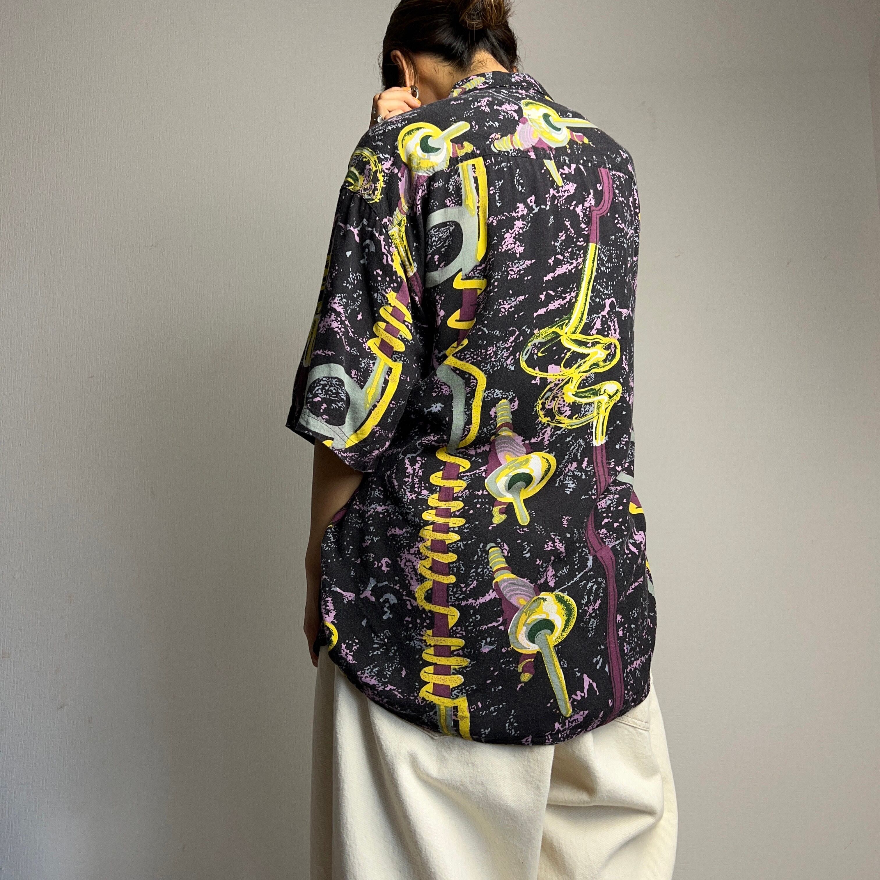 90's CAMPUS 総柄 Rayon Shirt SIZE L【0726A23】【ネコポス発送可能】