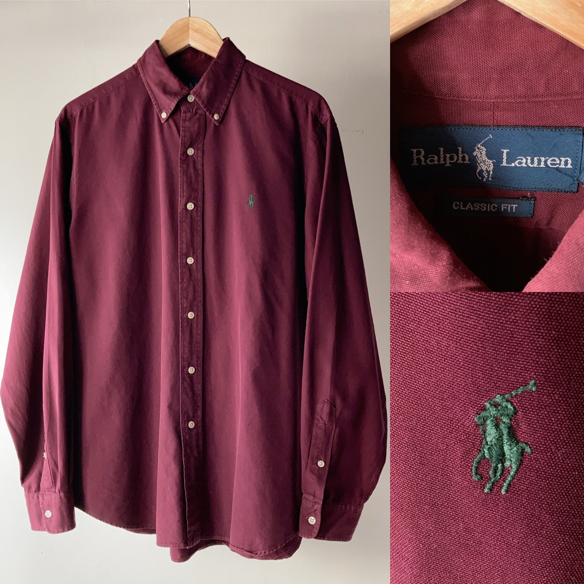 Ralph Lauren "CLASSIC FIT " コットンシャツ ボルドー SIZE L【0726A38】