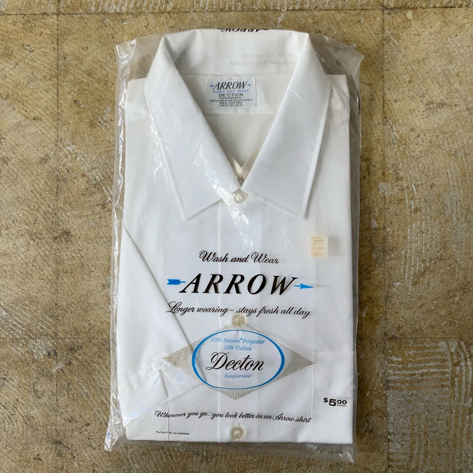 ~70's ARROW S/S ポリコットン白シャツ "DEAD STOCK" 半袖 SIZE L 【0730A18】