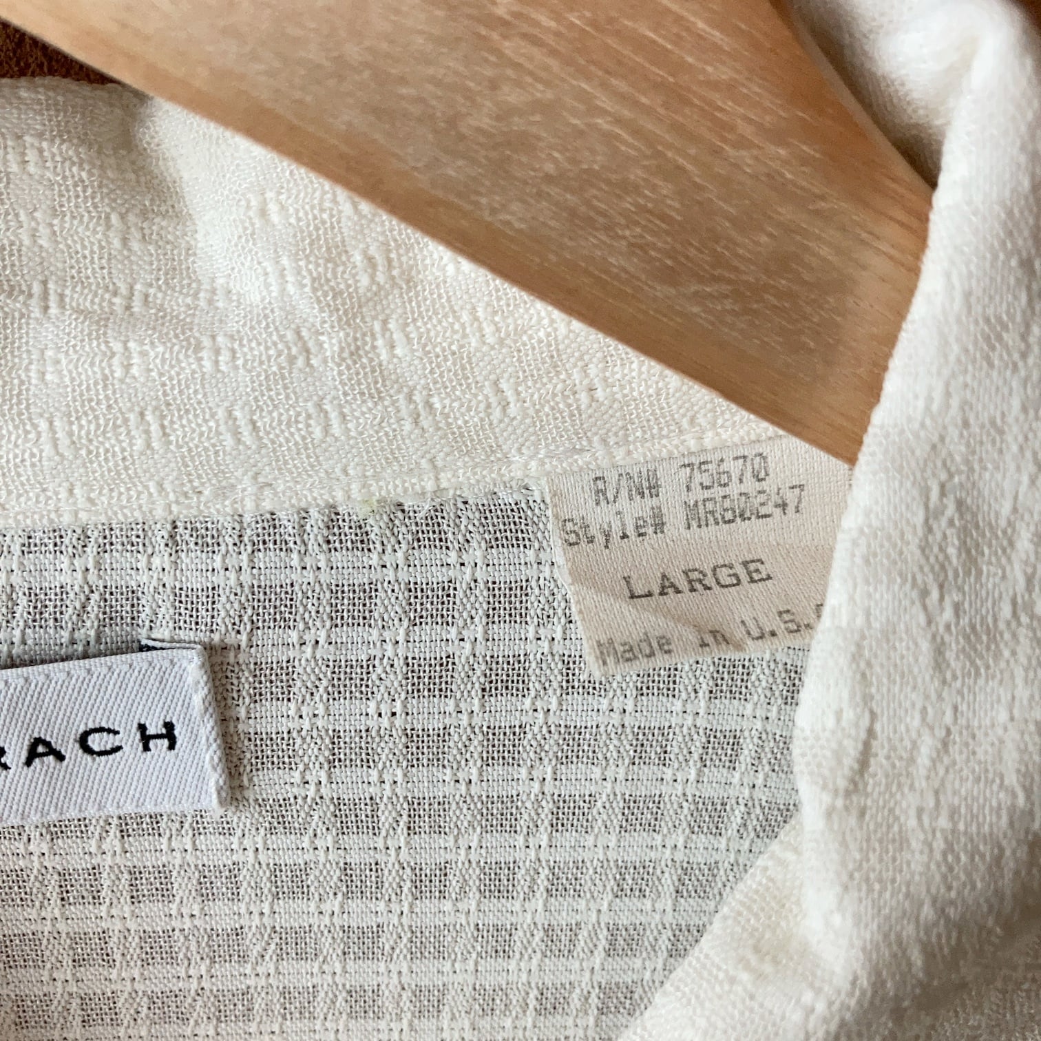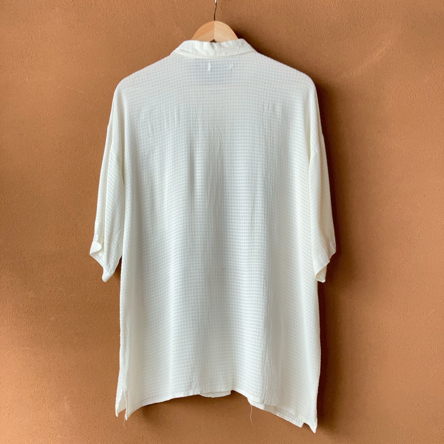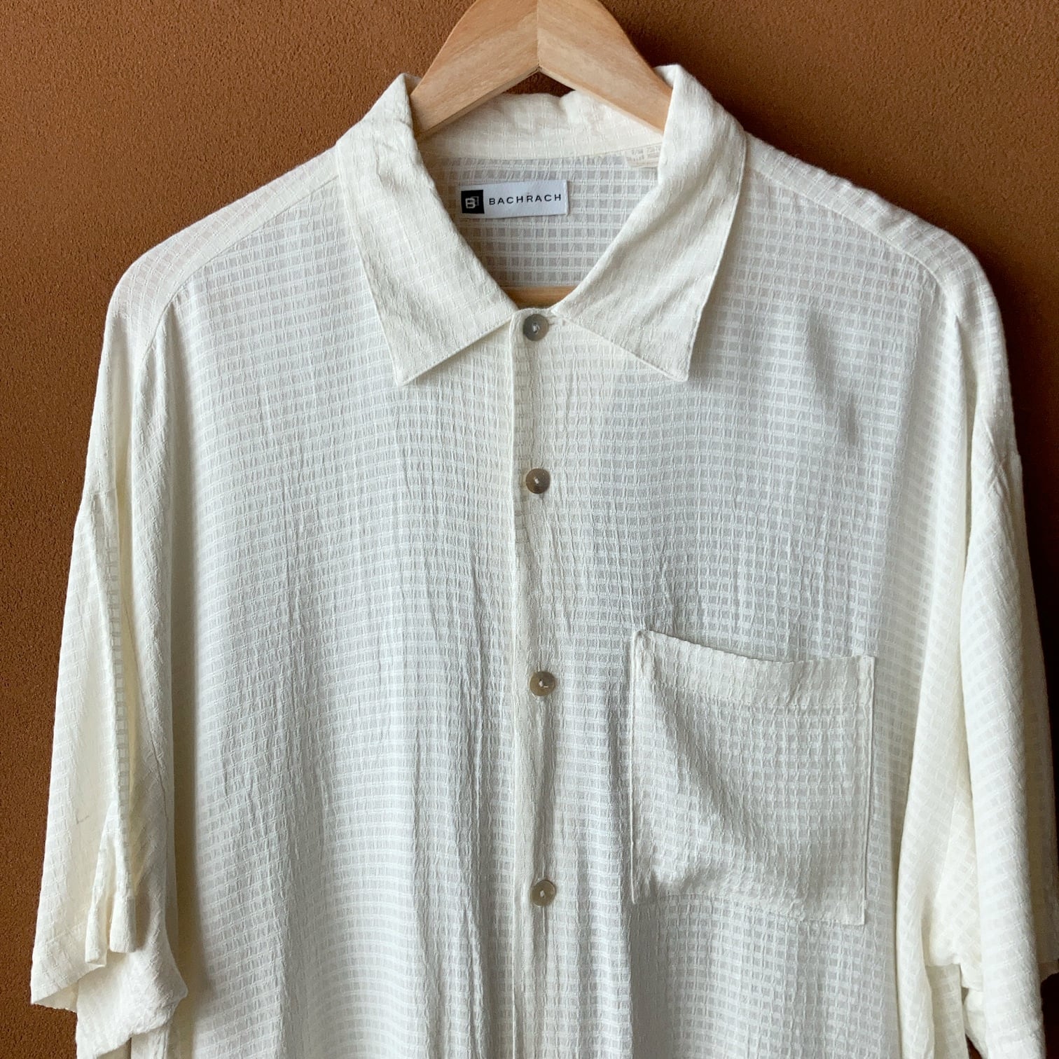 90's USA製 BACHRACH 織柄 レーヨン混紡シャツ オフホワイト SIZE L【0806A08】