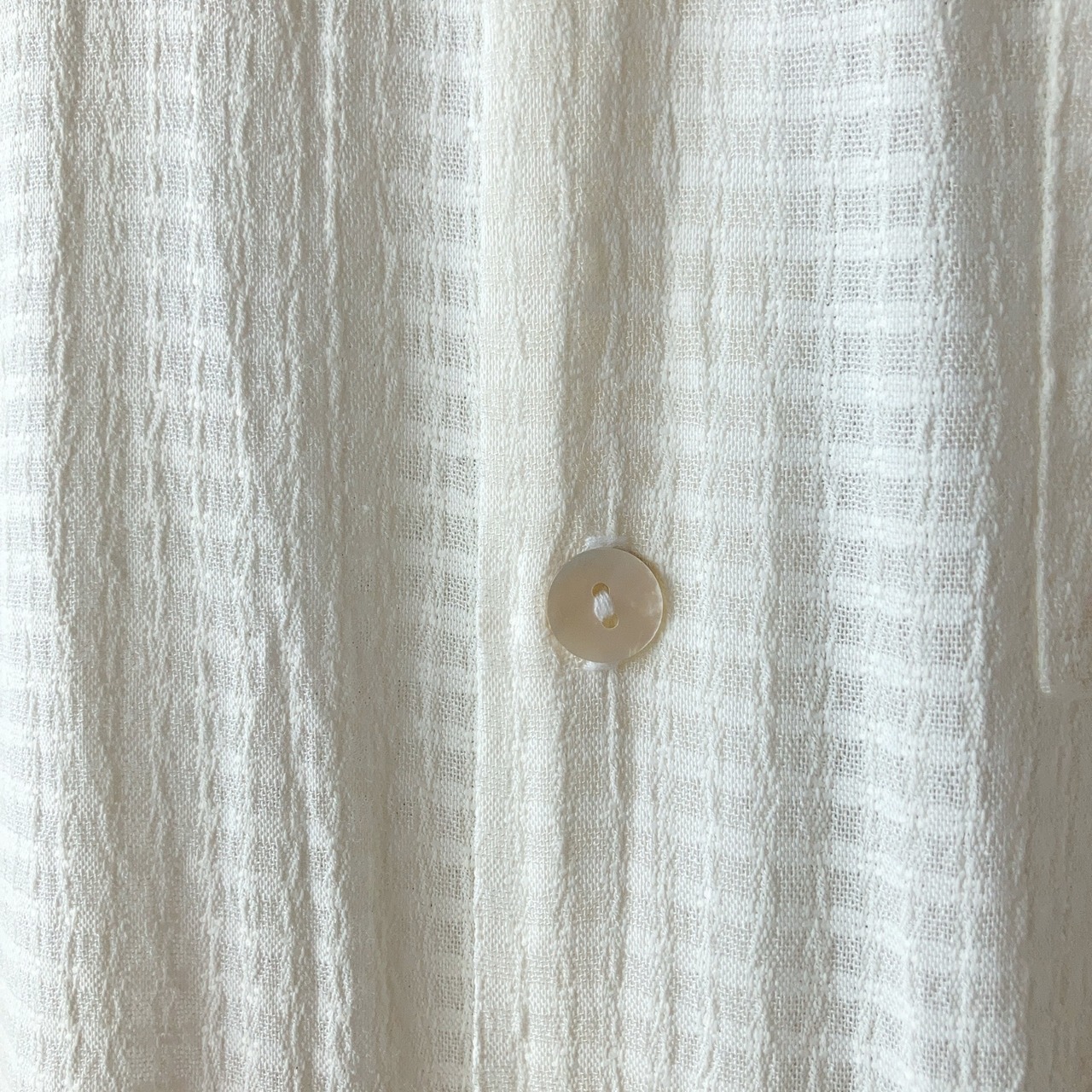 アセテートとレーヨンの混紡でテロっとした生地感となります。ボタンはシェルボタンが使用されています。