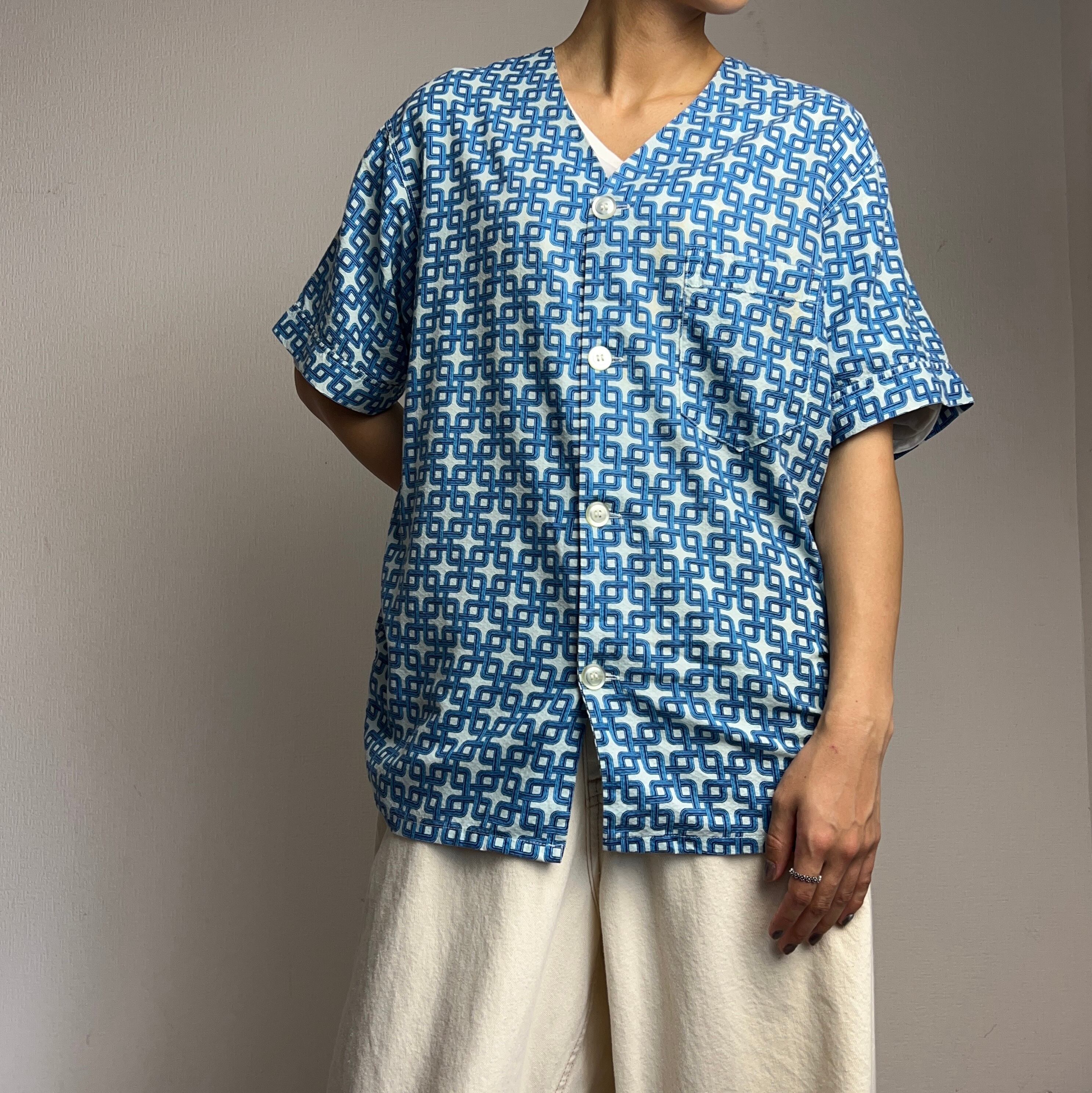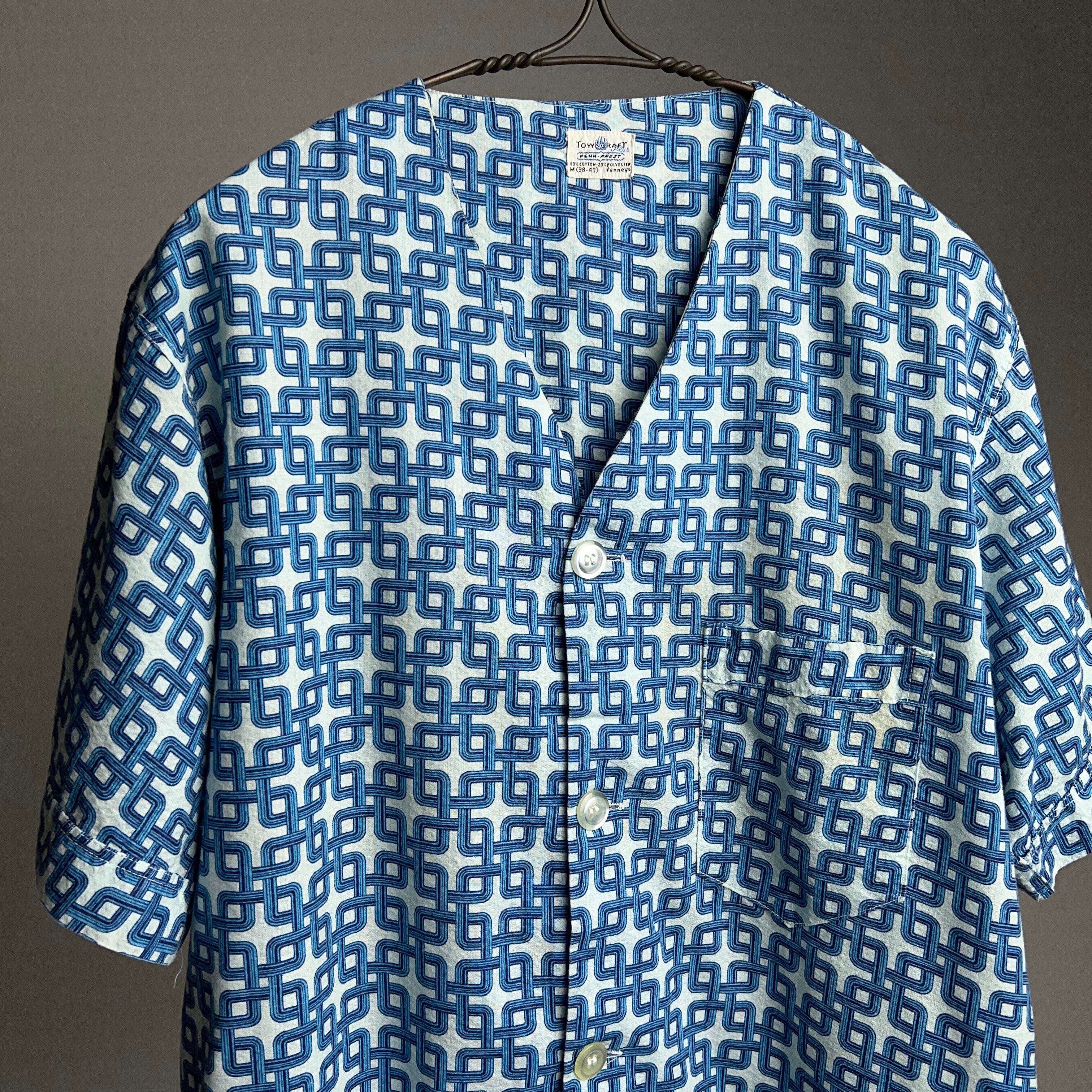 60's "TOWN CRAFT" NO COLLAR PAJAMA SHIRT 総柄 SIZE M【0806A53】【送料無料】