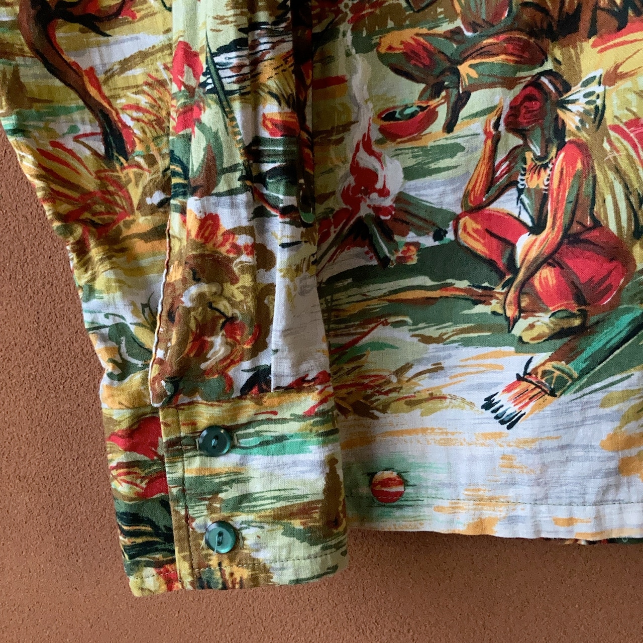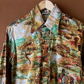 70's MADMAN "先住民柄" コットンL/Sシャツ SIZE M【0814A27】