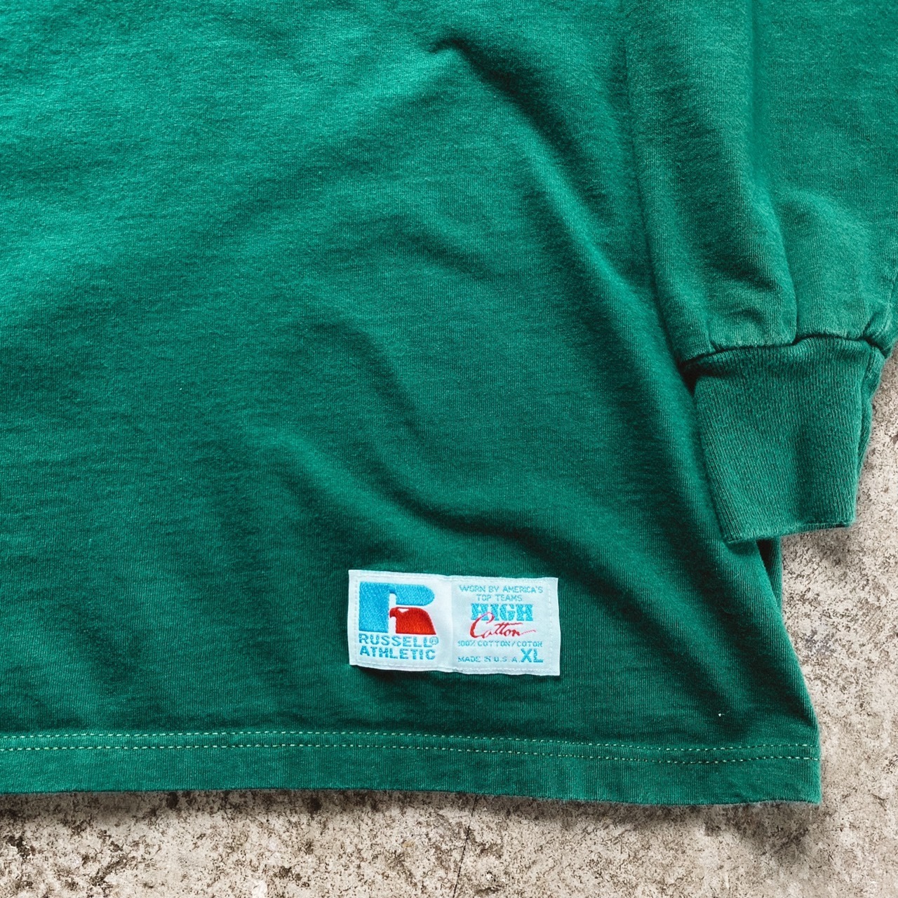 90s RUSSEL カレッジ ロンTee ダークグリーンカラー【0823A08】