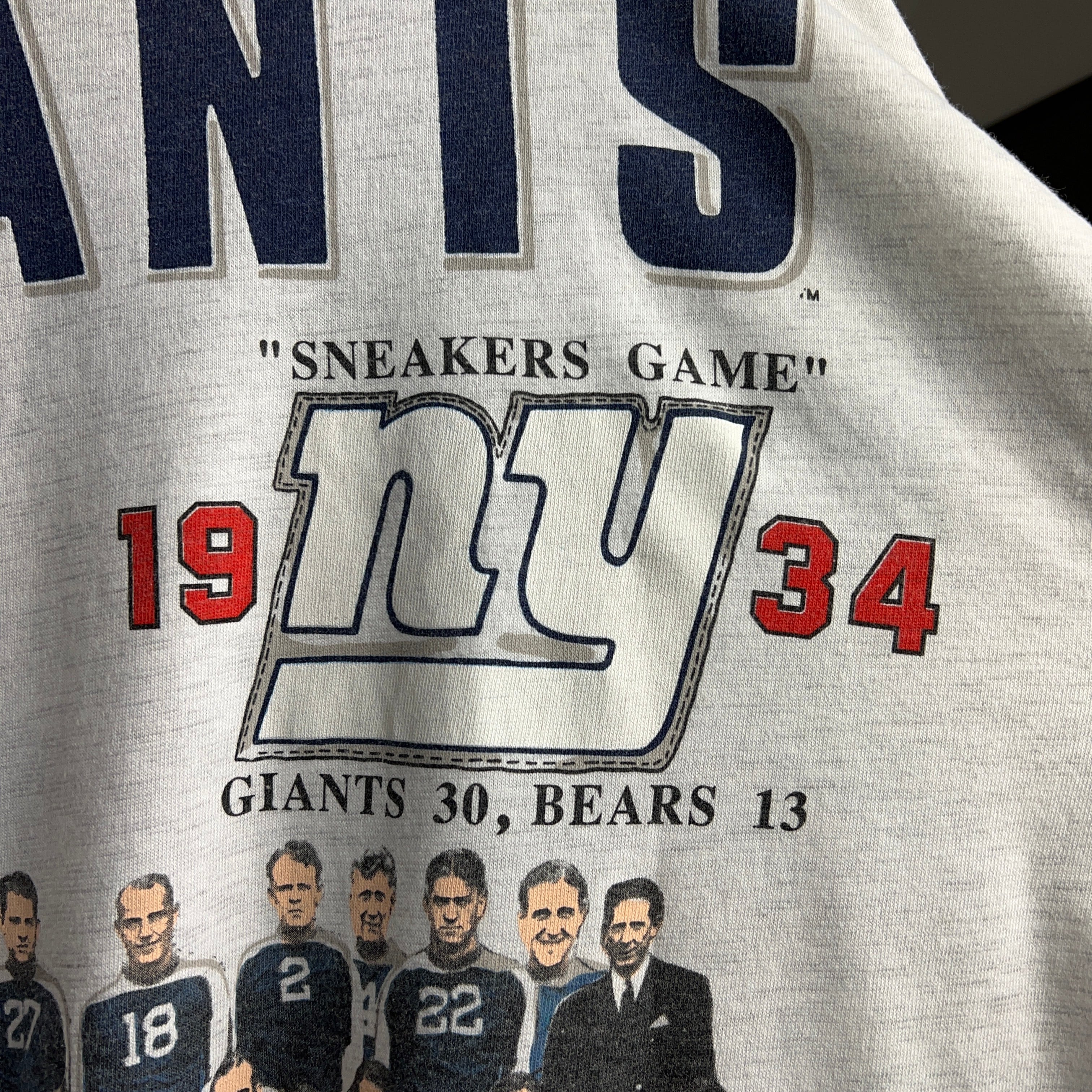 背面には1934年に「スーパーボウル」で優勝した当時の選手達が描かれています。