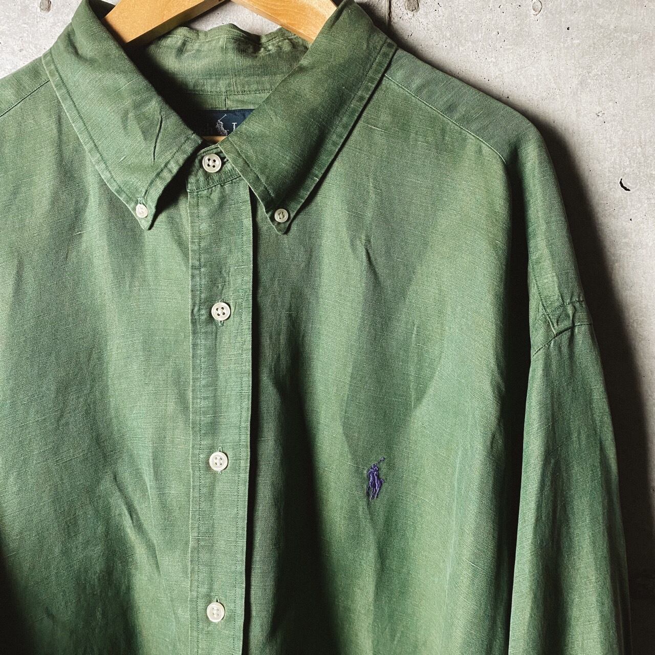 Ralph Lauren シルクリネンシャツ グリーンカラー【0913M14】