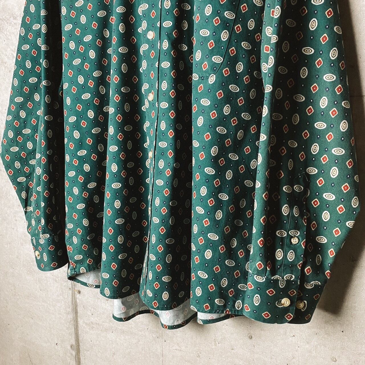 L/S 総柄シャツ ダークグリーンカラー【1004M03】