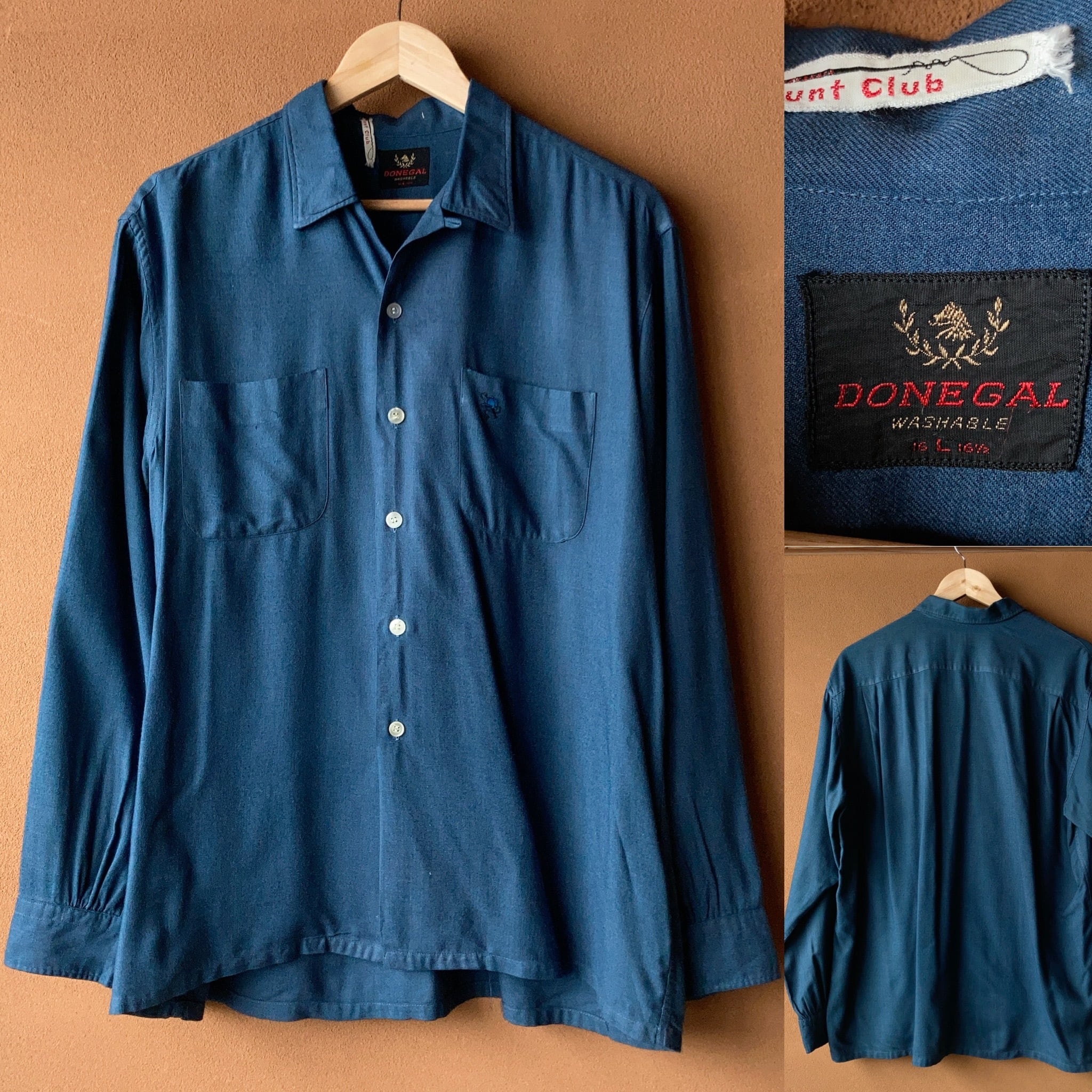 1960's DONEGAL レーヨンオープンカラーシャツ エジプシアン・ブルー SIZE L【1004A29】