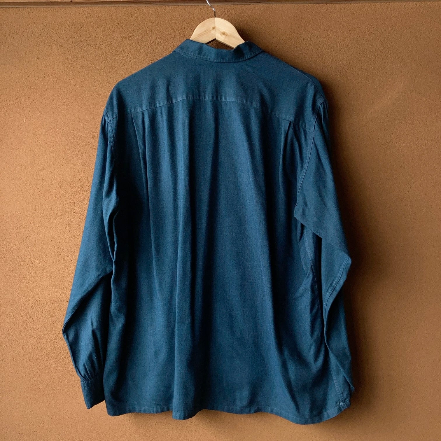 ビンテージらしい褪せたブルーの色合い、レーヨンの柔らかい質感でこなれたシルエットとなります。