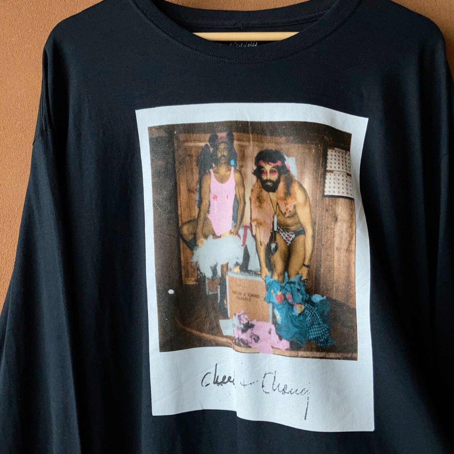 1970年代から80年代にマリファナやヒッピーを題材にした映画や音楽で人気を博した「Cheech & Chong」のプリントロンTee。