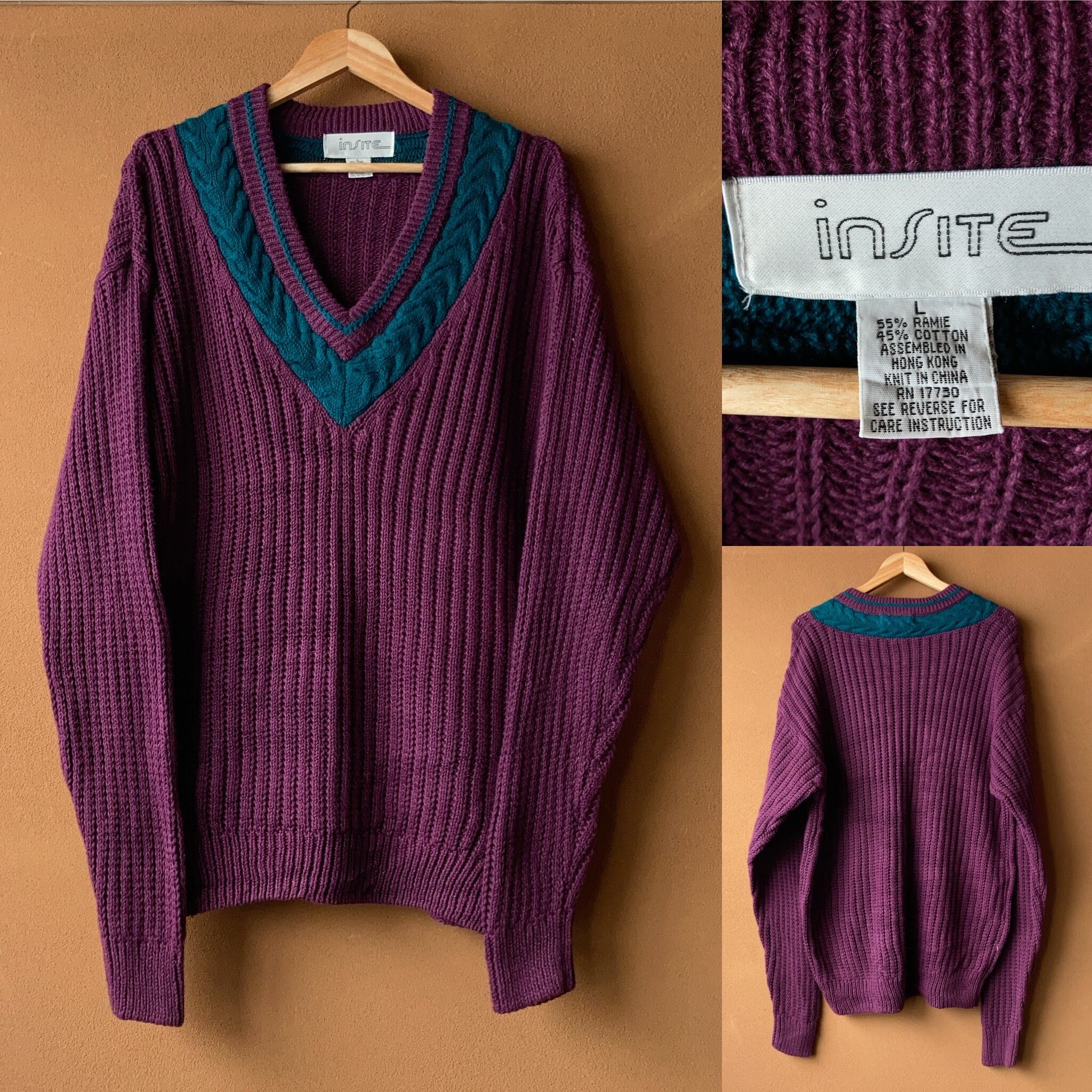 INSITE チルデンニットセーター パープル×グリーン SIZE L【1015A10】