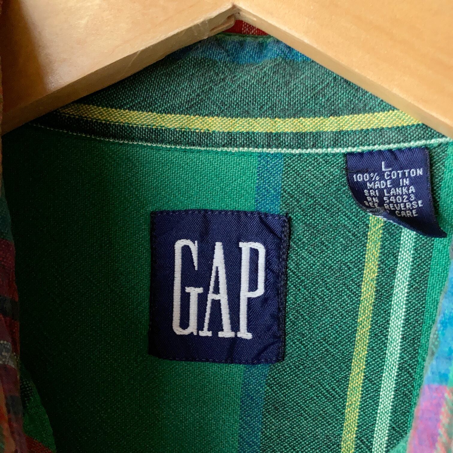 90's old GAP コットンチェックシャツ グリーン SIZE L【1015A21】