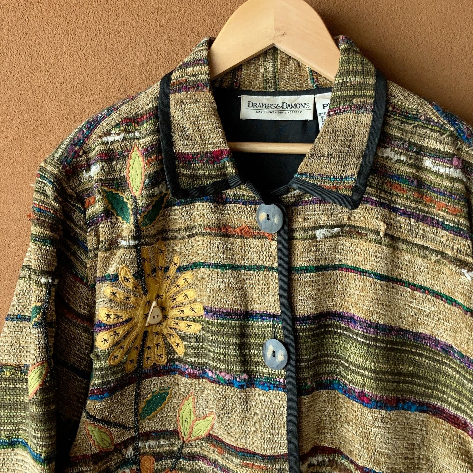 織り柄 刺繍デザインジャケット シルクレーヨン混紡 SIZE PXL【1022A04】