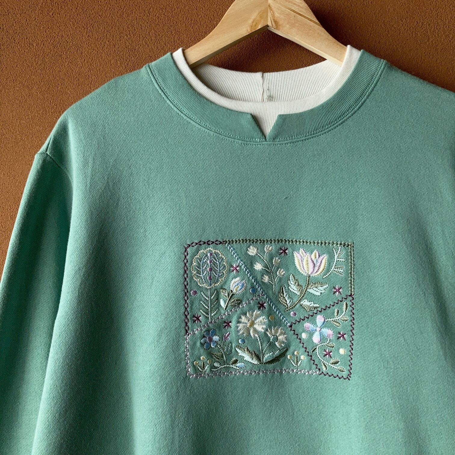 フラワー刺繍スウェット ペールグリーン SIZE XL【1105A04】