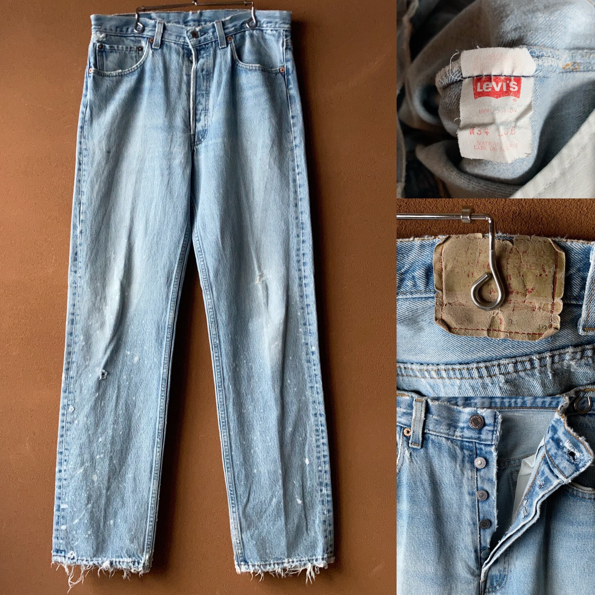 90年代USA製のLevi's 501ダメージストレートデニム。