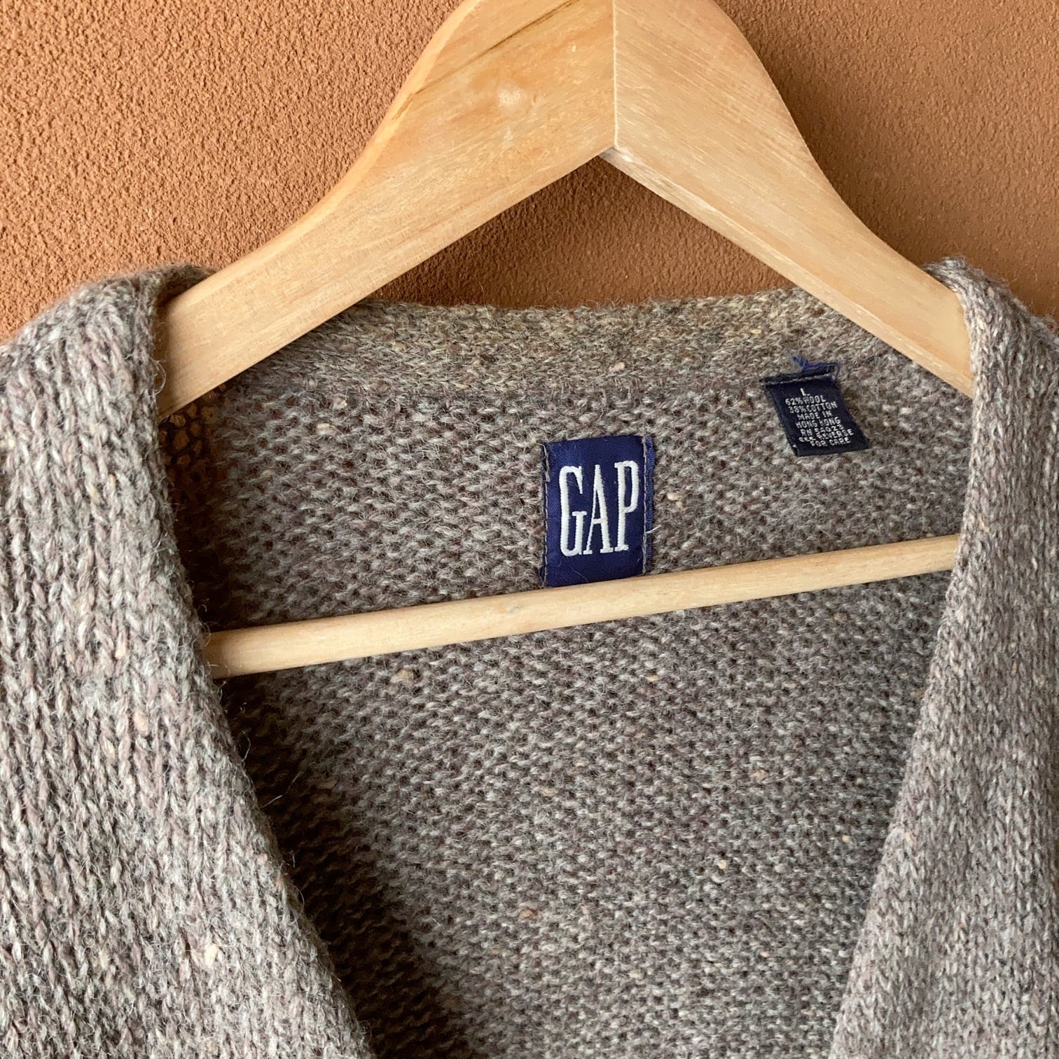 90's OLD GAP ローゲージニットカーディガン ウール×コットン混紡 グレージュ 【1126A01】