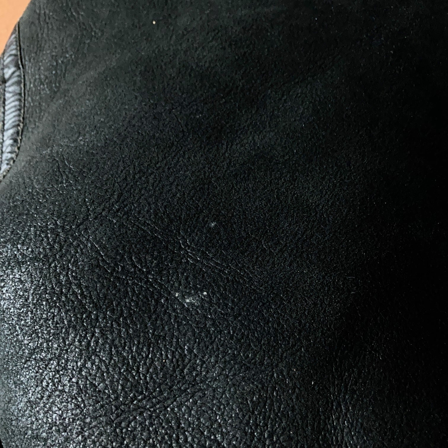 ボマージャケットの代表格「B-3」タイプのレザームートンジャケット。オールブラック仕様で非常にクール。