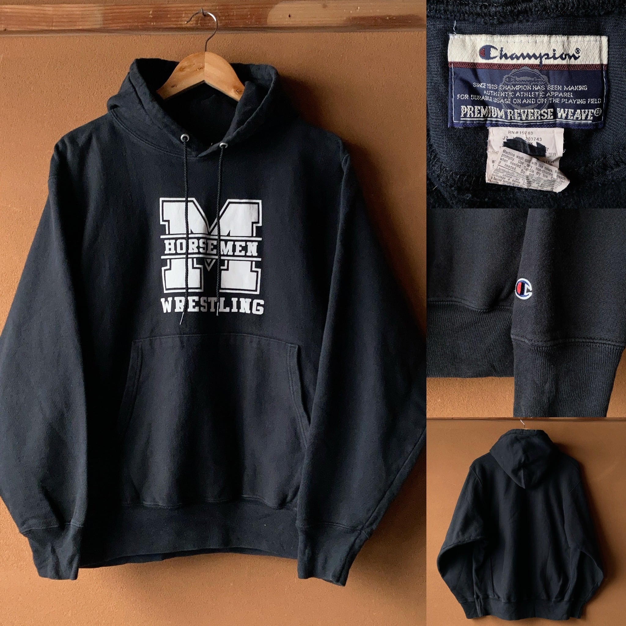00's Champion REVERSE WEAVE カレッジプリントパーカー ブラック SIZE M【1210A12】