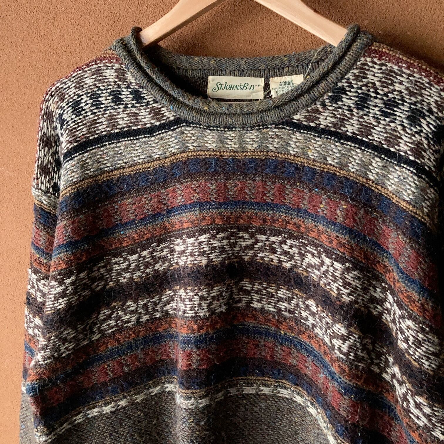 90's ST JOHN'SBAY ニットセーター マルチボーダー ノルディック調 SIZE L【1210A21】