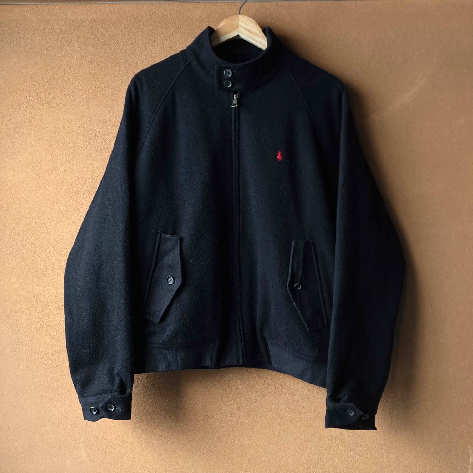 90's~ POLO by Ralph Lauren ウール ハリントンジャケット マットブラック SIZE M【1210A32】