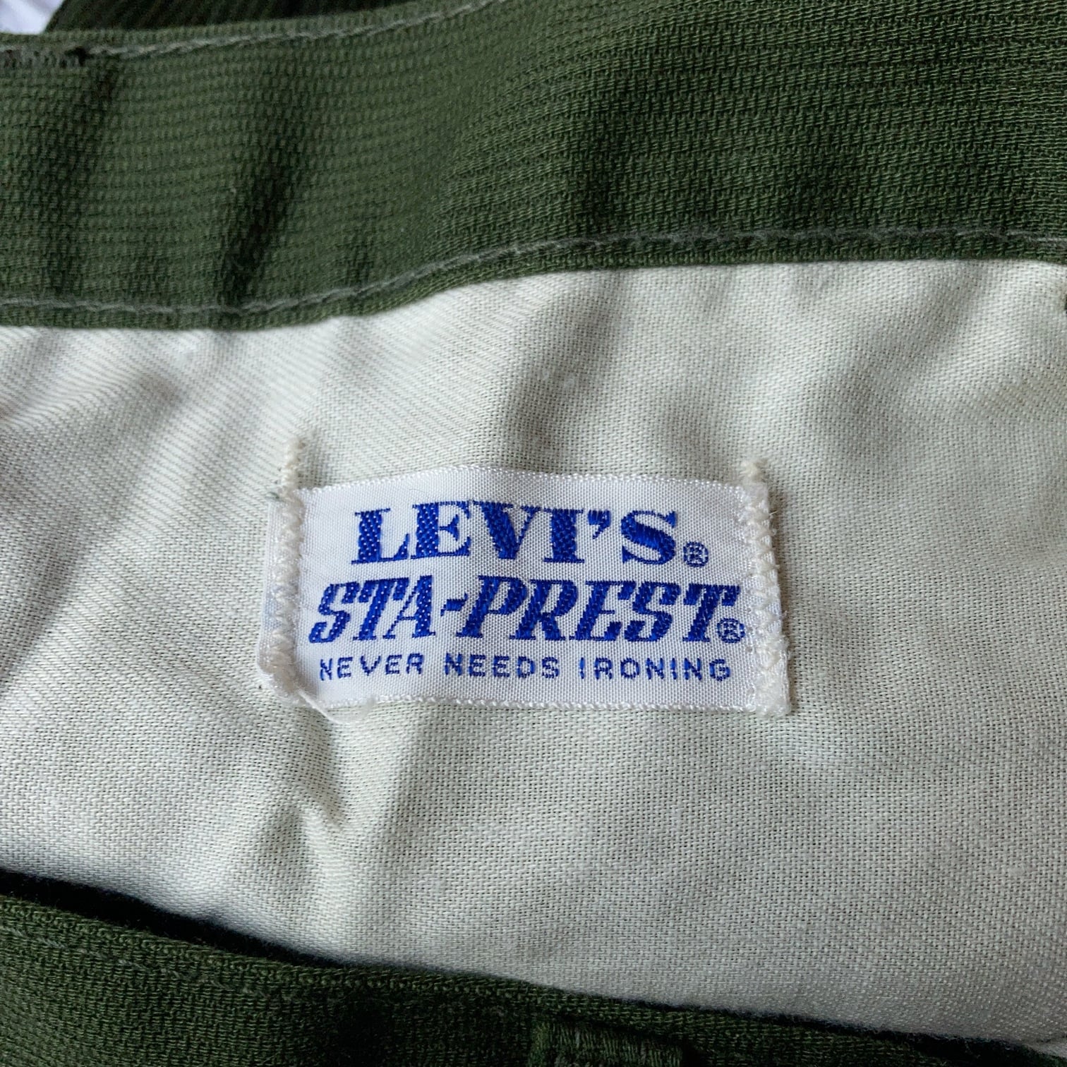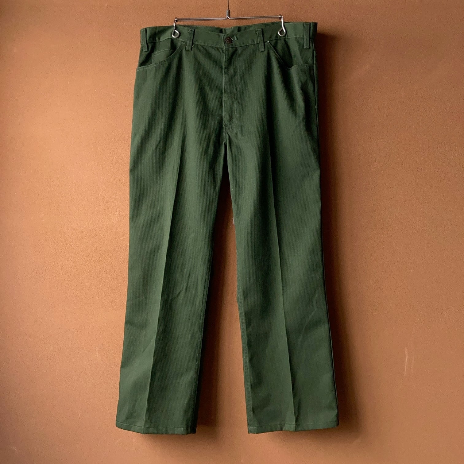 70's LEVI'S STA-PREST ピケ スタプレパンツ BIG"E" USA製 ダークグリーン W39(実寸)【1217A31M】