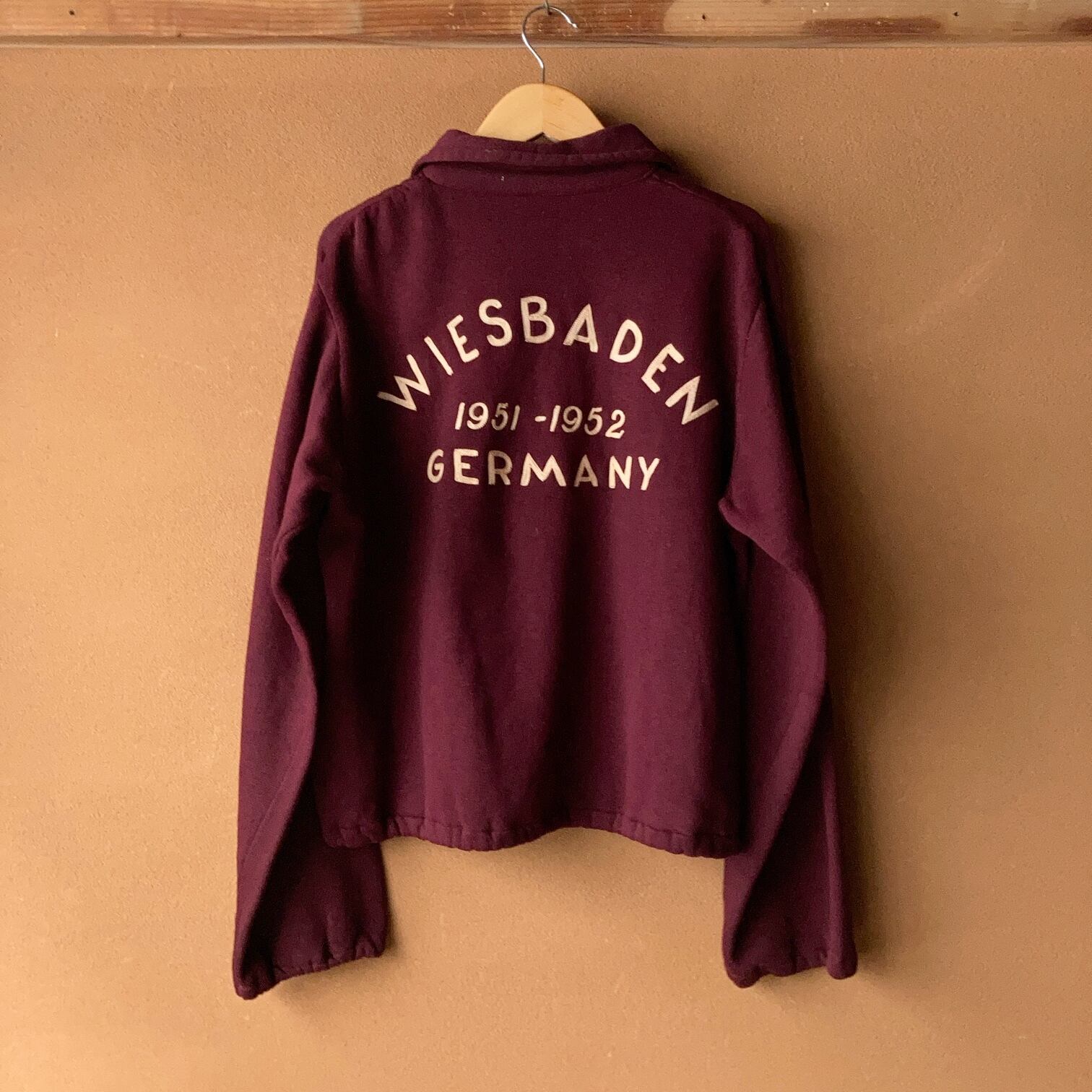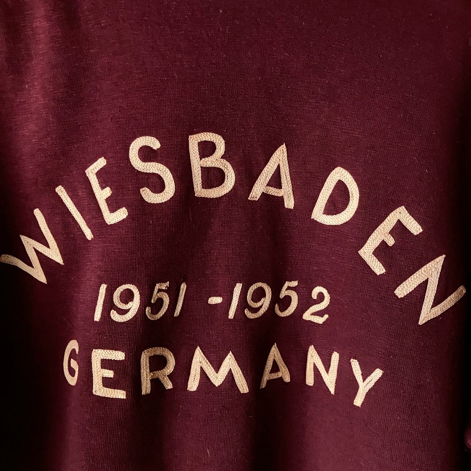 1950年代初頭のビンテージスウェット。背中には「WIESBADEN 1951-1952 GERMANY」の文字がチェーンステッチで刺繍されています。