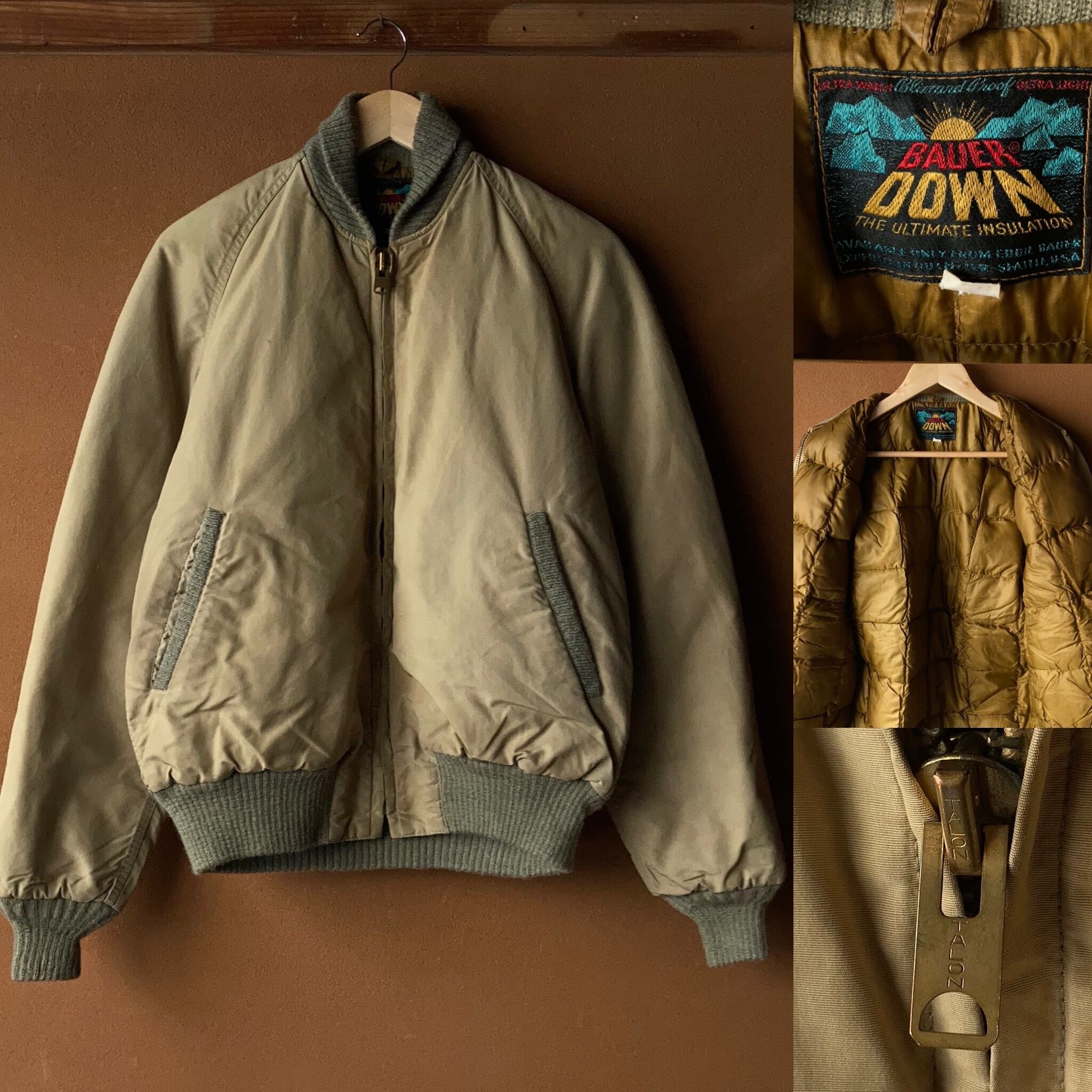 「BAUER DOWN」のタグが付いたビンテージ物。