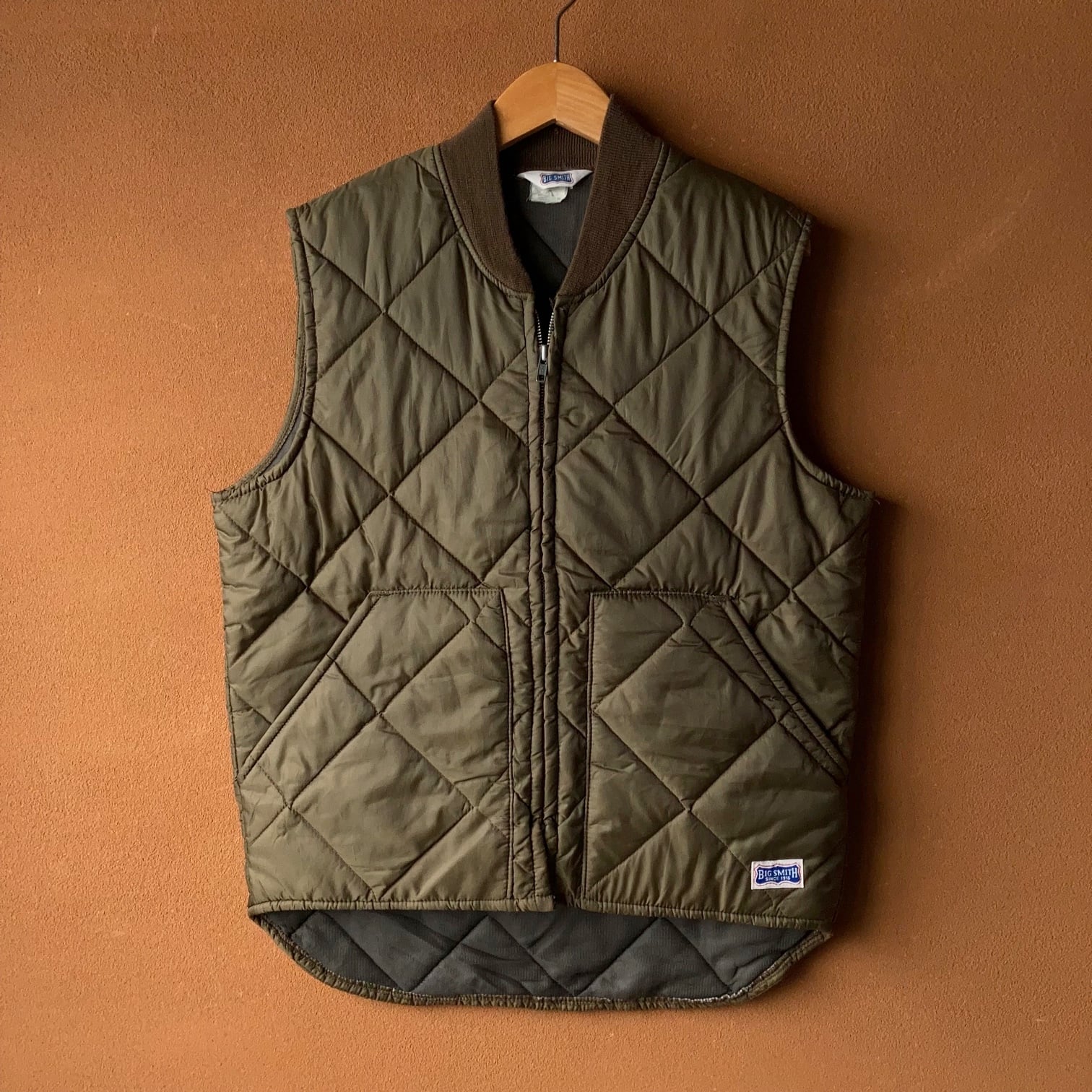80~90's BIG SMITH キルティングベスト オリーブグリーン USA製【0114A21】