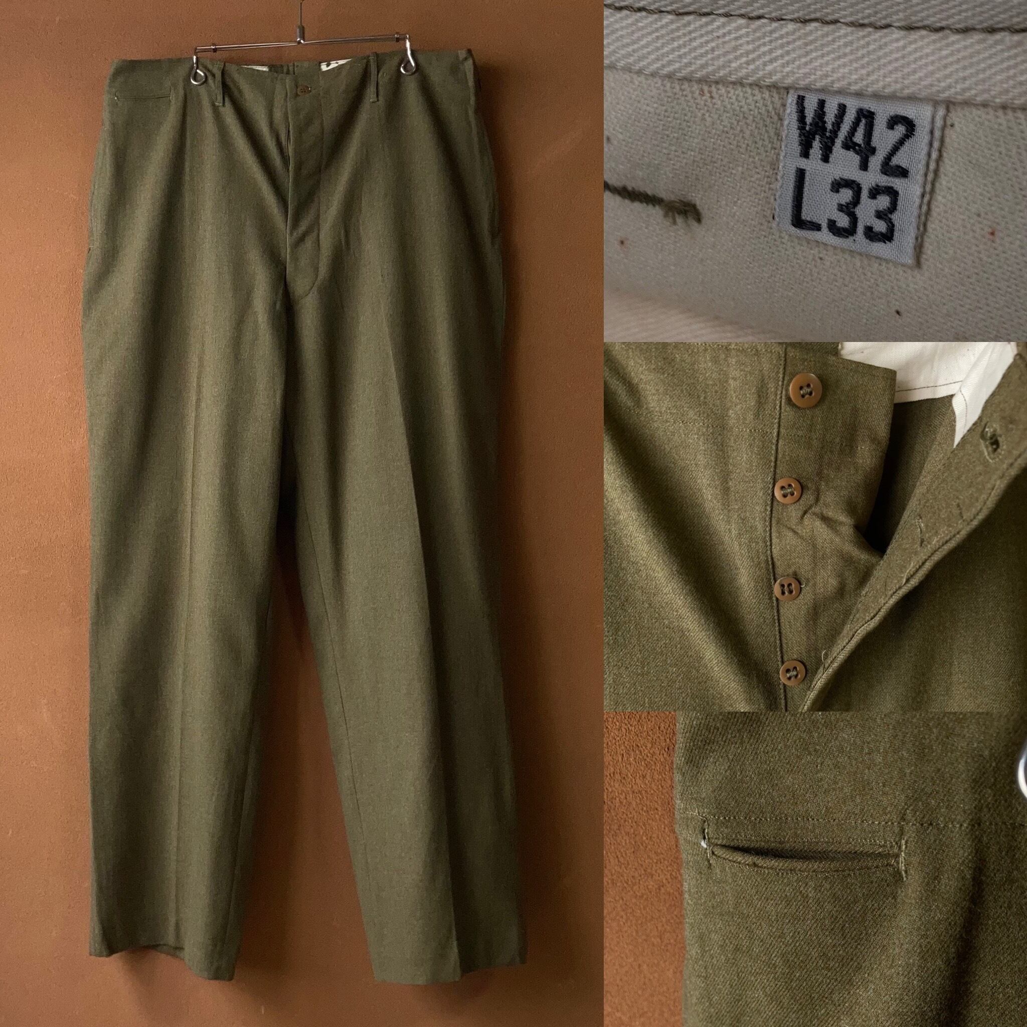 1940's U.S.MILITALY ウールトラウザーズ ボタンフライ W42 極太【0121A05】
