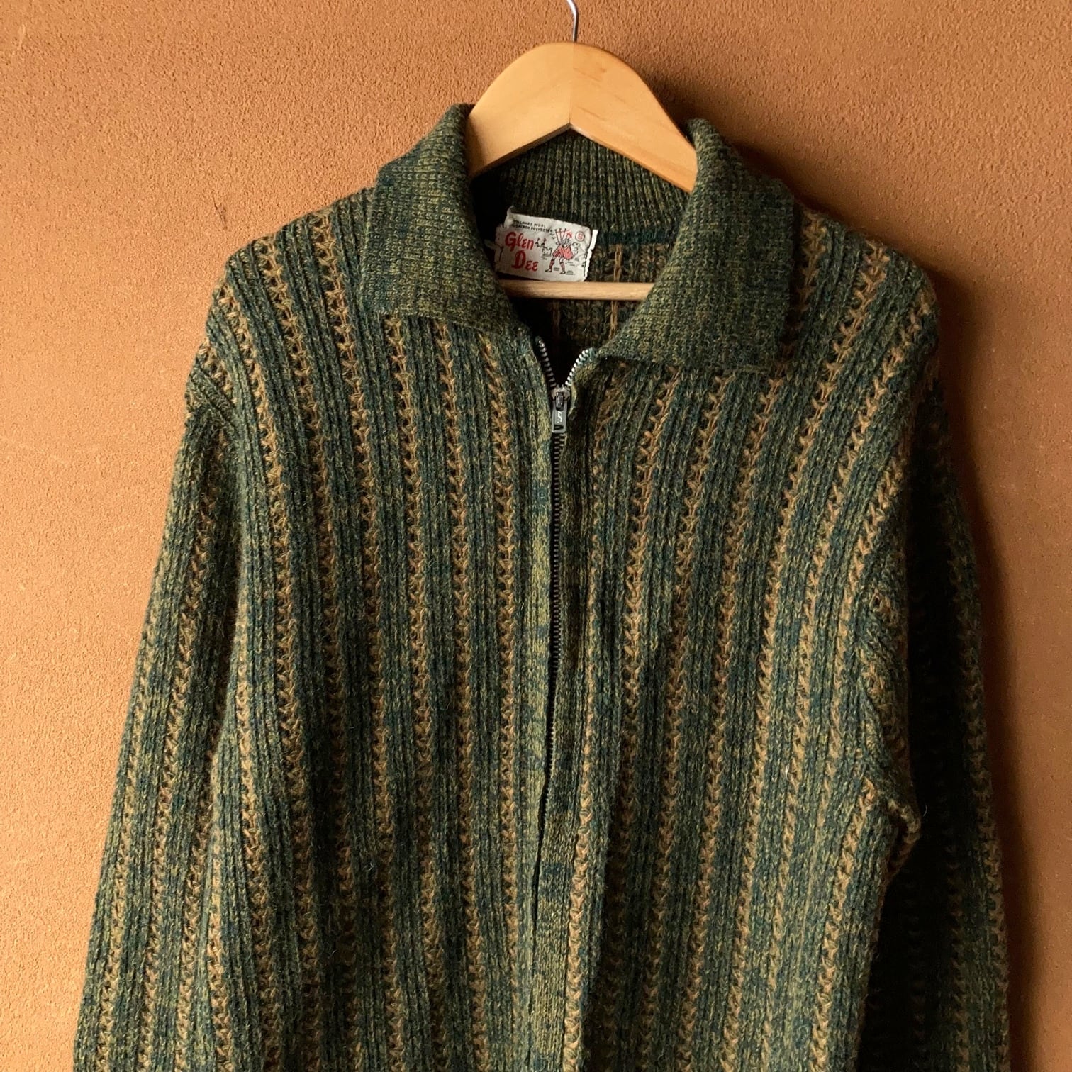 1960~70's Glen Dee フルジップニットジャケット グリーン&マスタード SIZE S【0204A39】