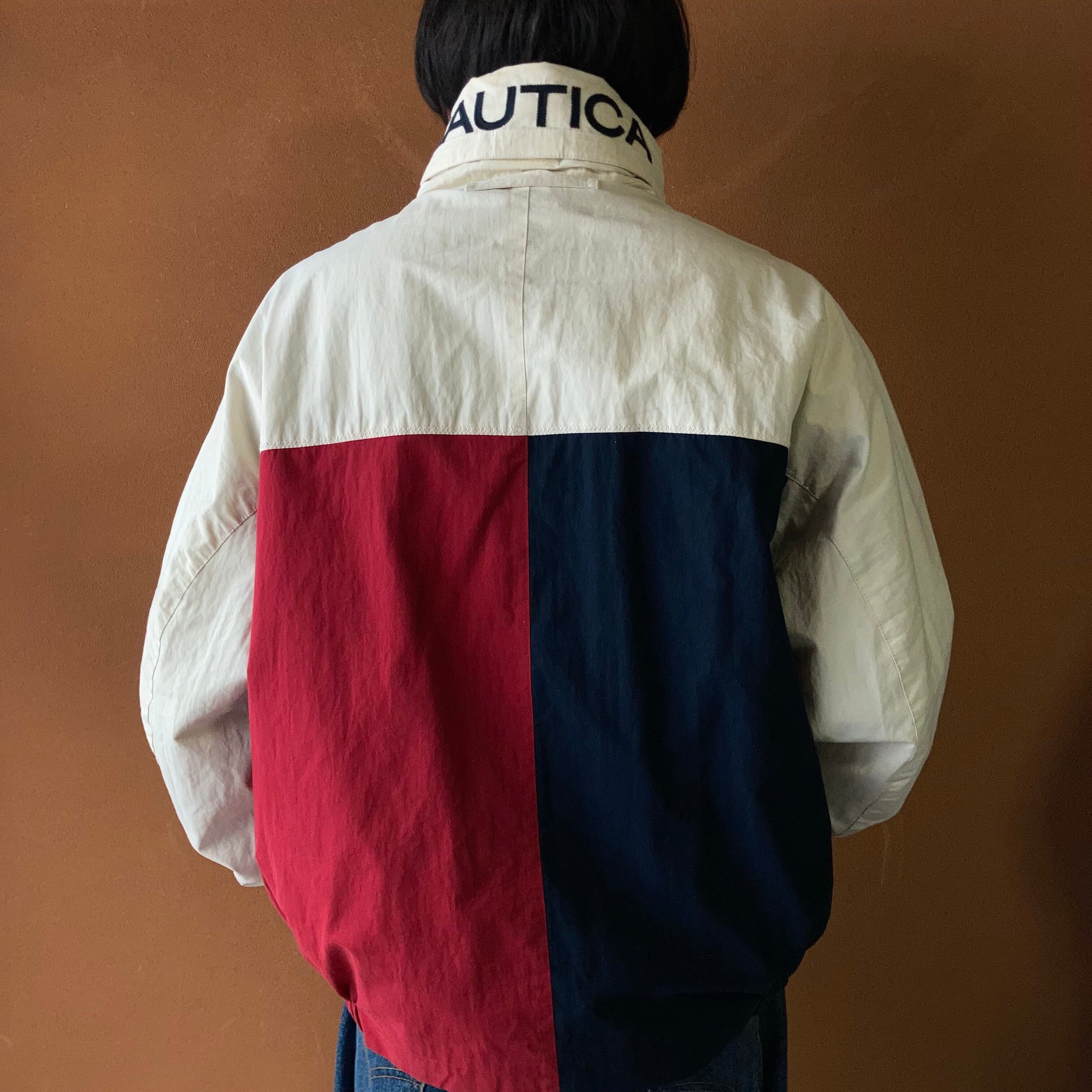 クレイジーパターンで切り替えが入ったNAUTICAらしい洒落たナイロンジャケット。