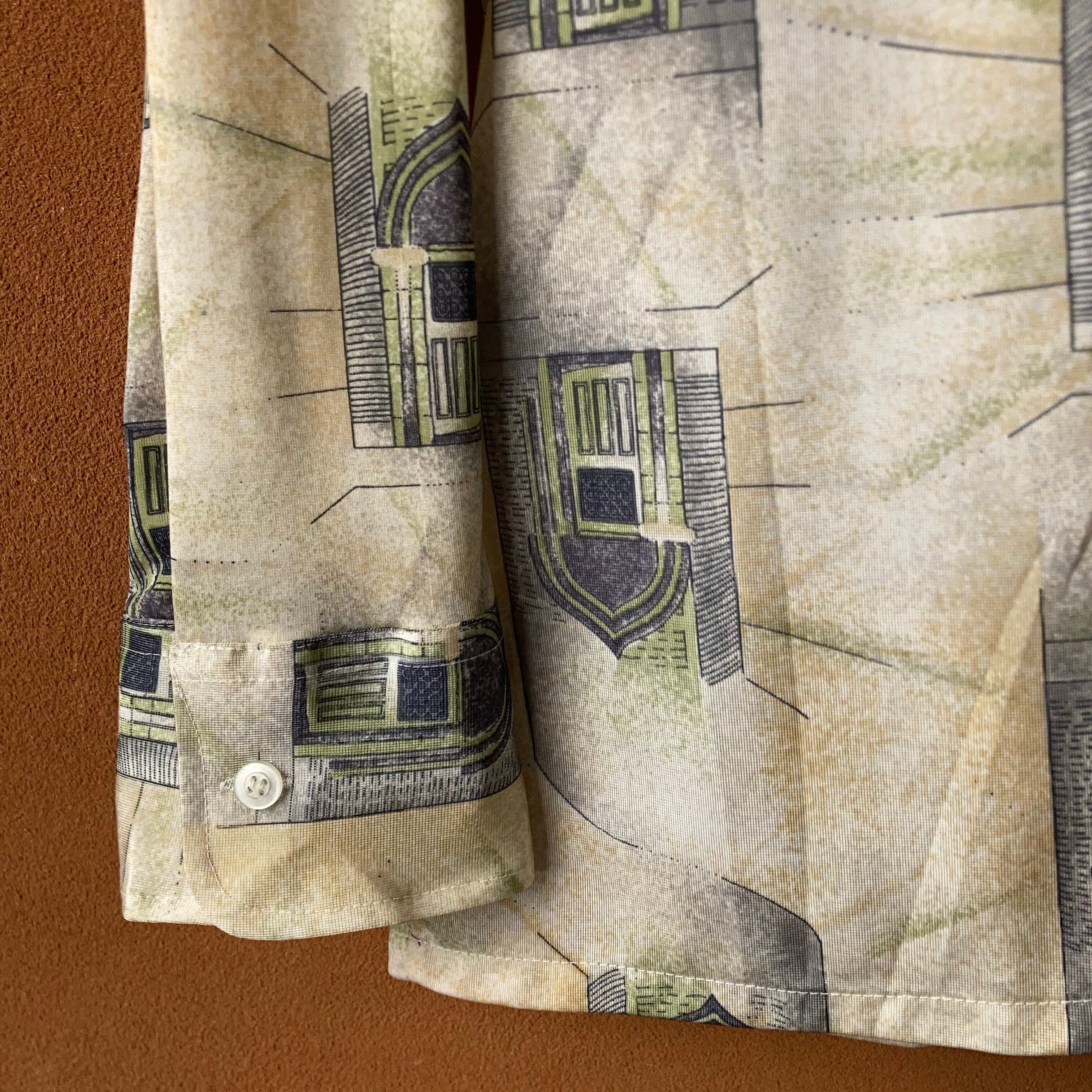 1970's~80's "アートプリント" 総柄シャツ ナイロン ポリシャツ SIZE L【0304A06】