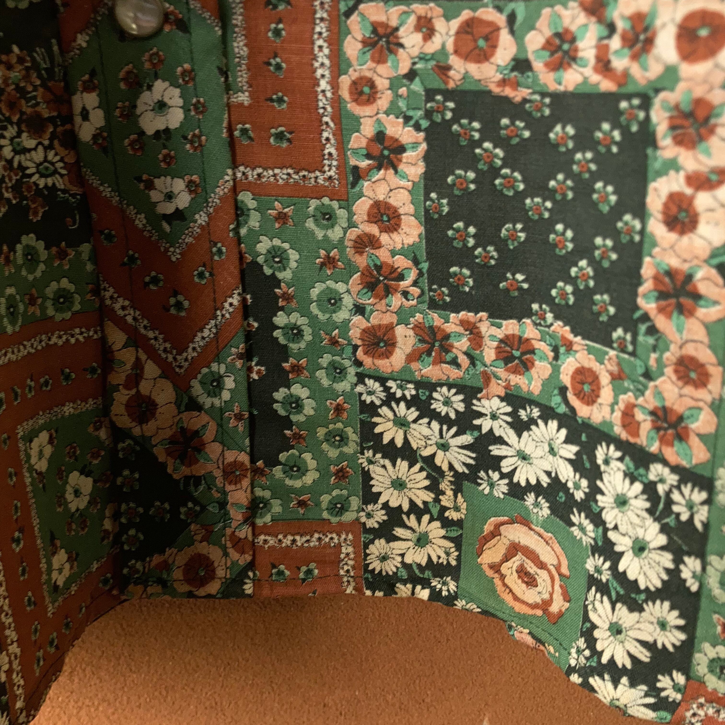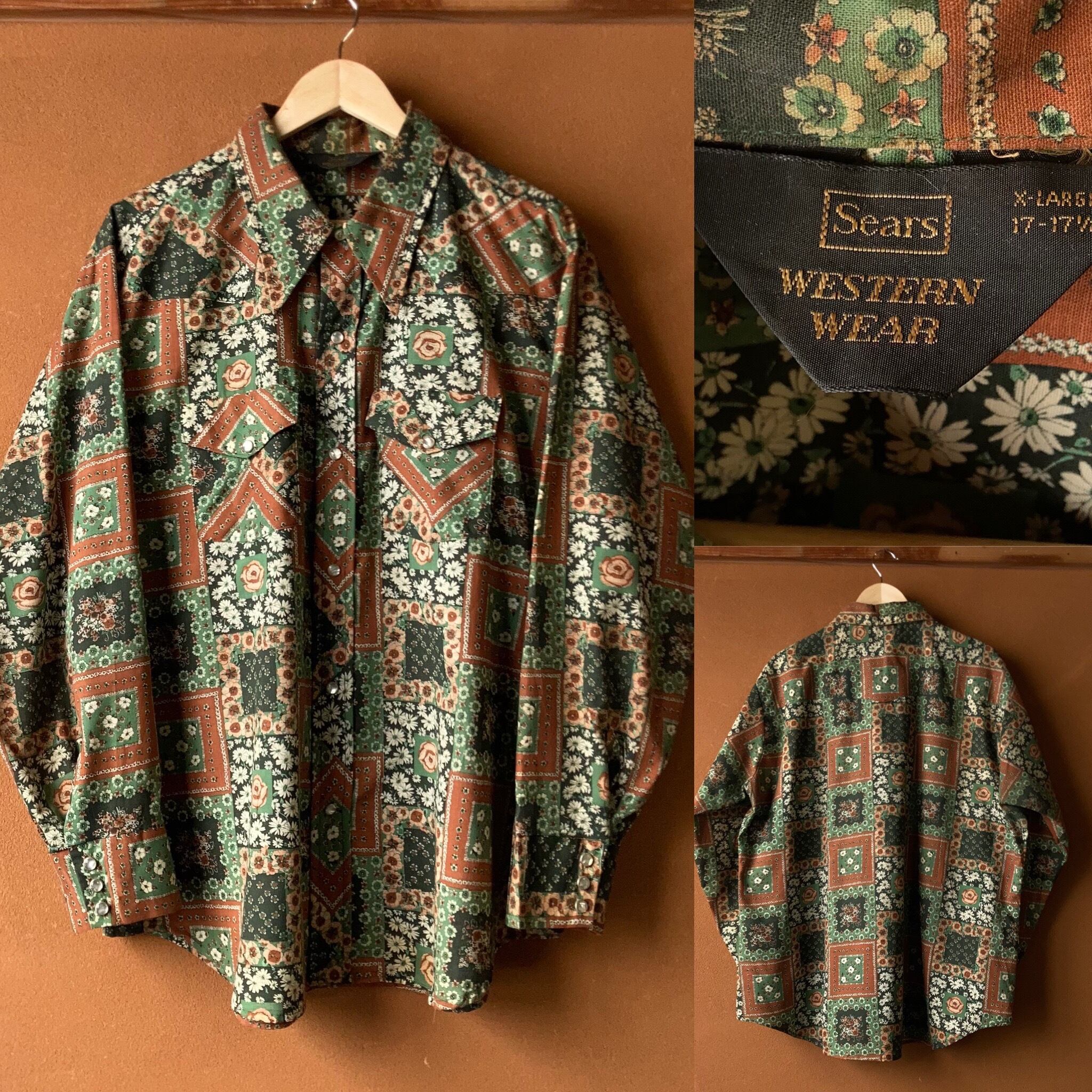 70's SEARS Western Wear ポリコットン小花柄シャツ SIZE XL【0304A10】