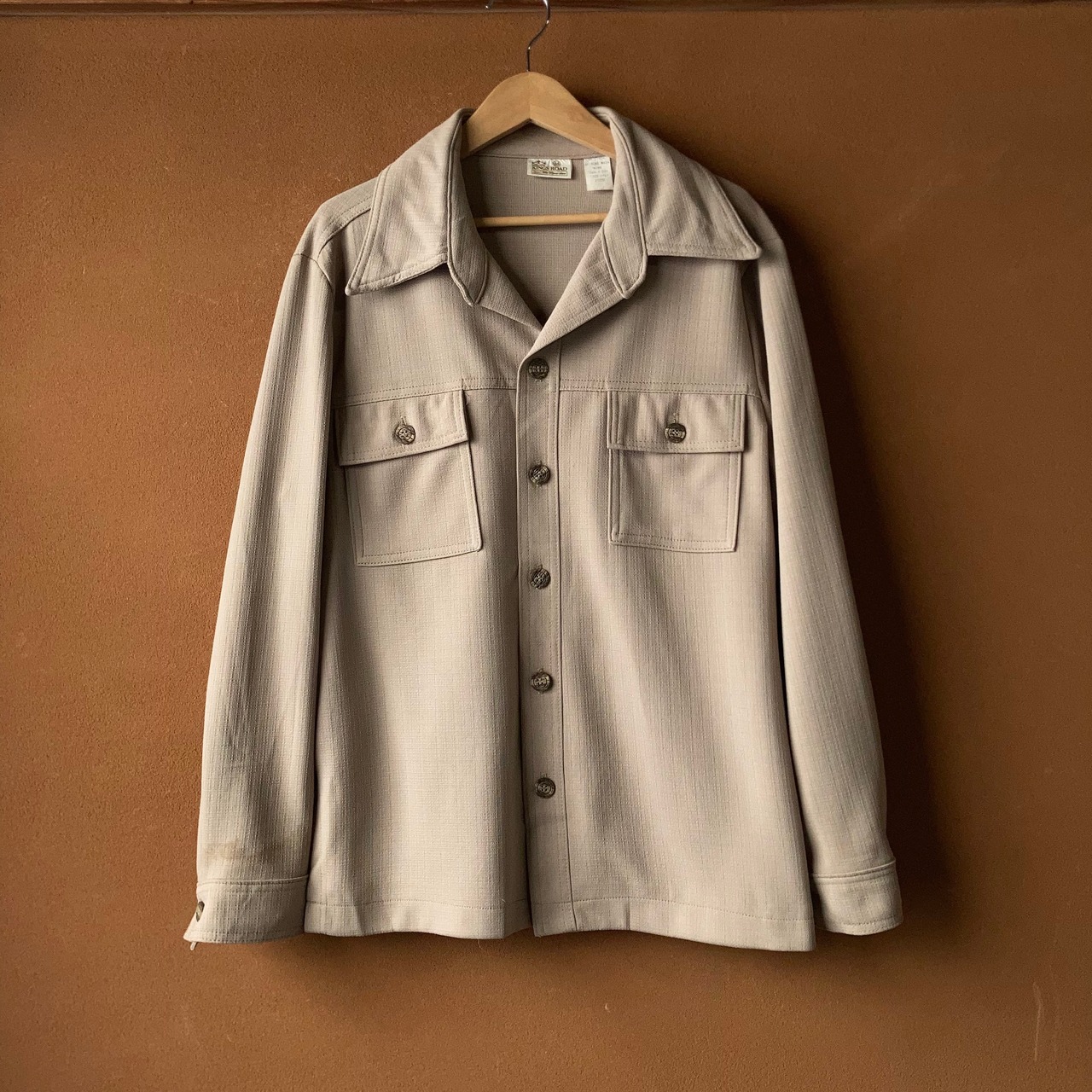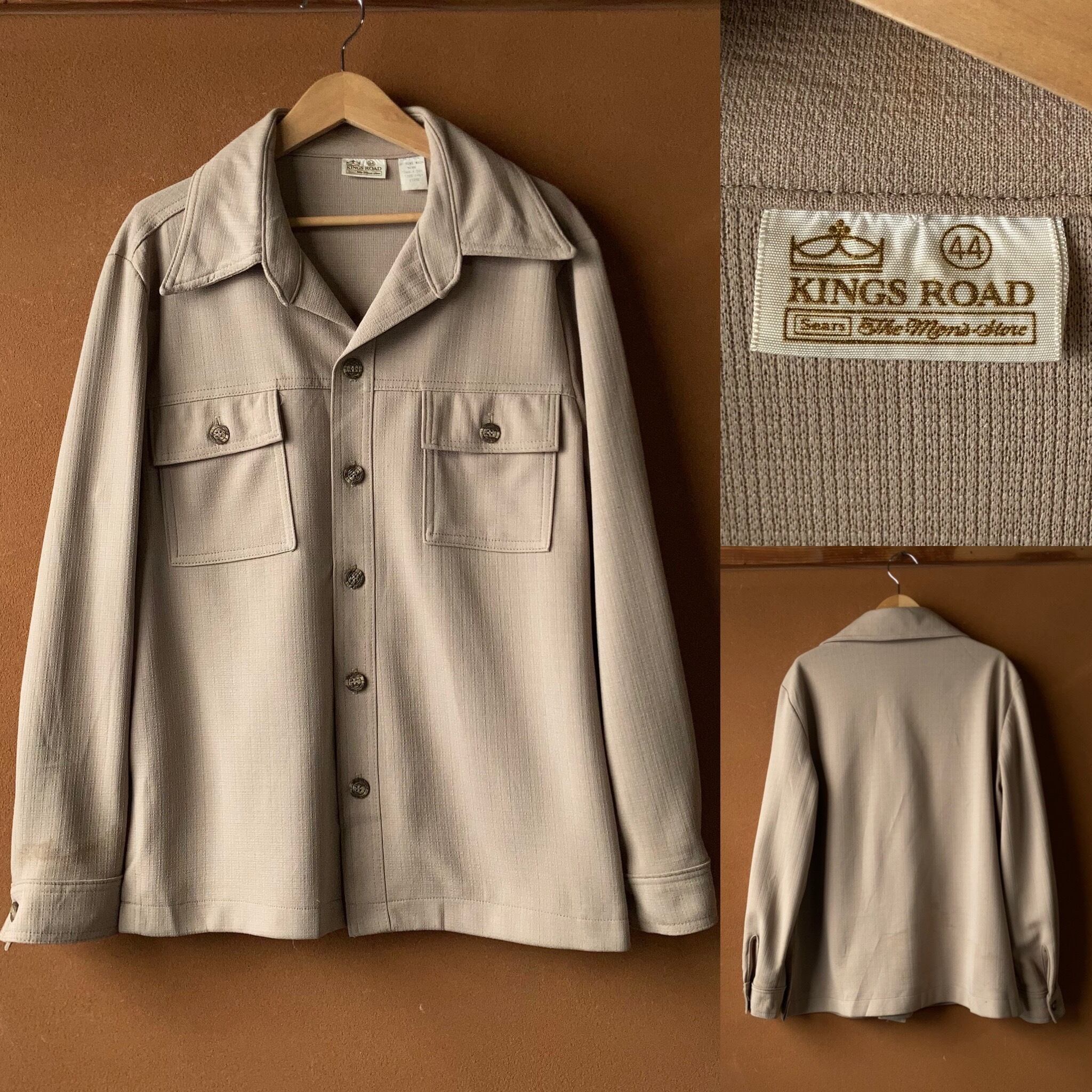 70's SEARS ポリエステルシャツジャケット ベージュ SIZE 44【0304A26】