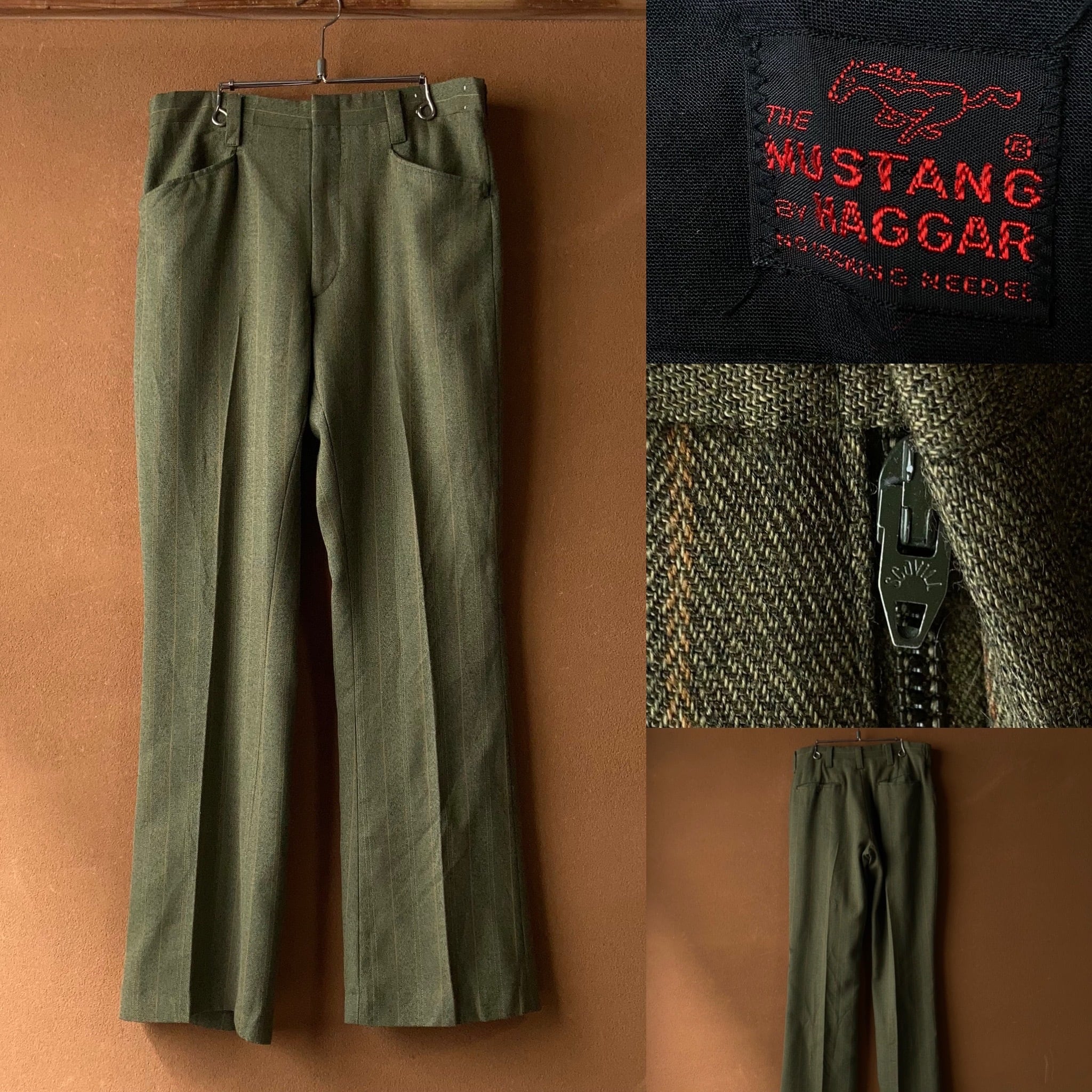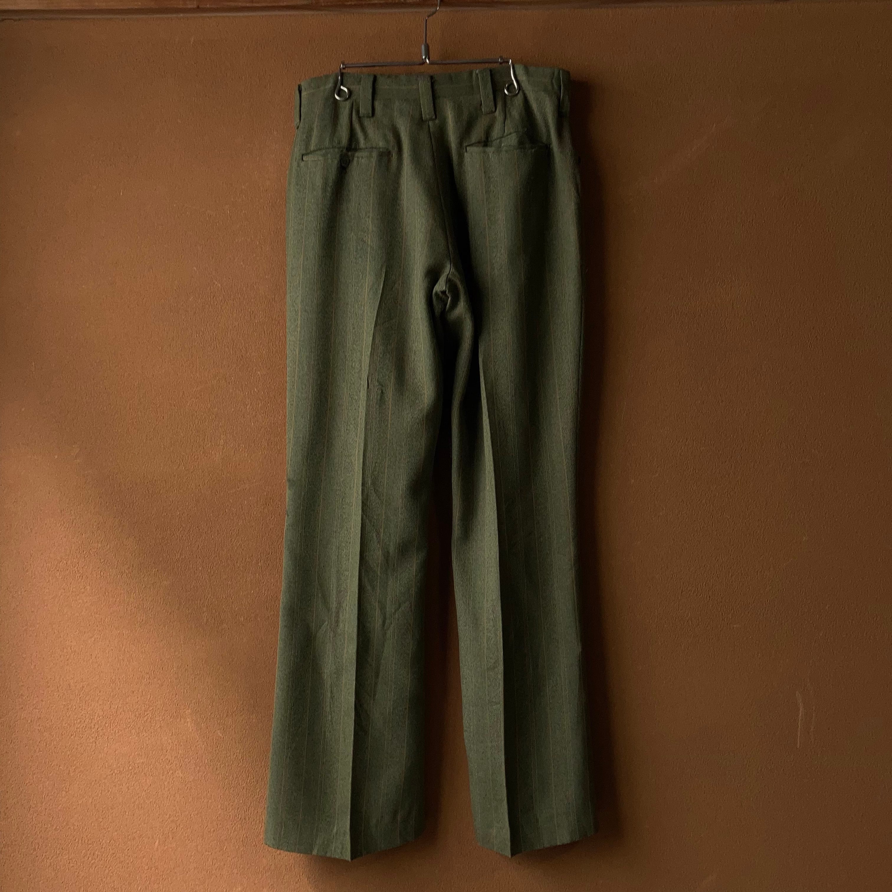 70's MUSTANG by HAGGAR ストライプフレアスラックス カーキ W32 【0304A56】