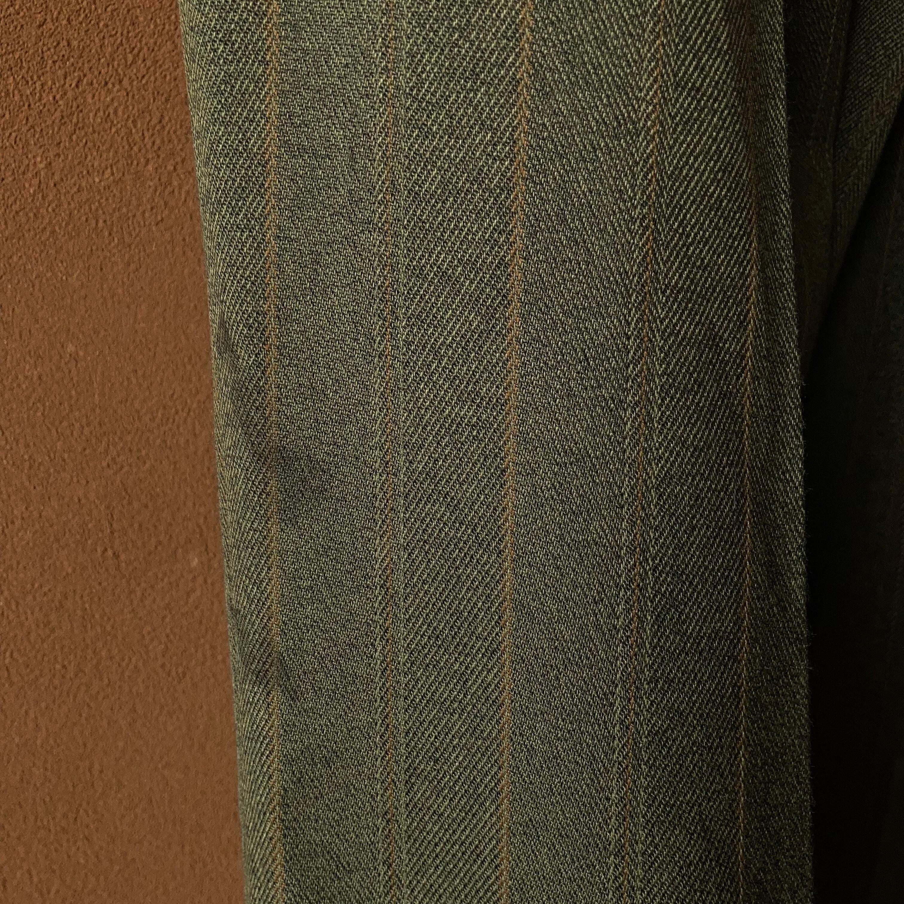 アーミーグリーンカラーに渋いストライプ柄入り。