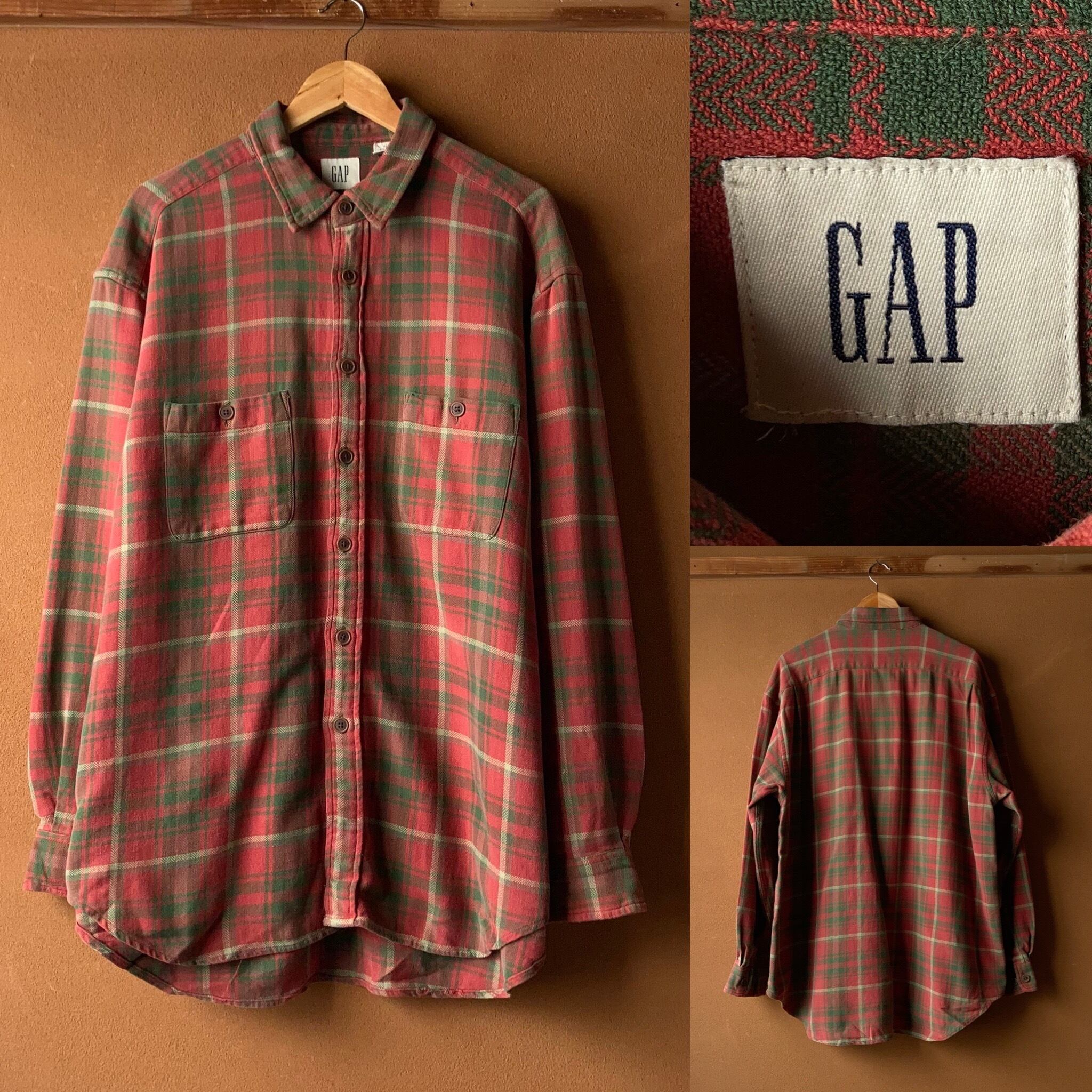 GAP ヘビーフランネルシャツ 色褪せ SIZE XL【0304A73】