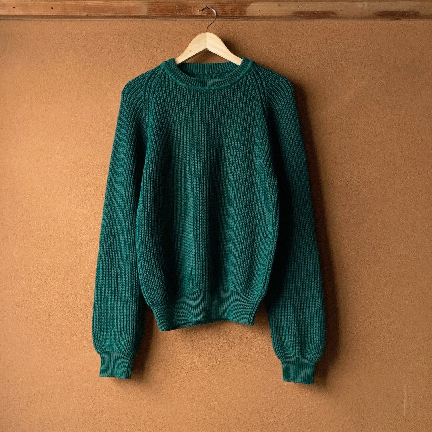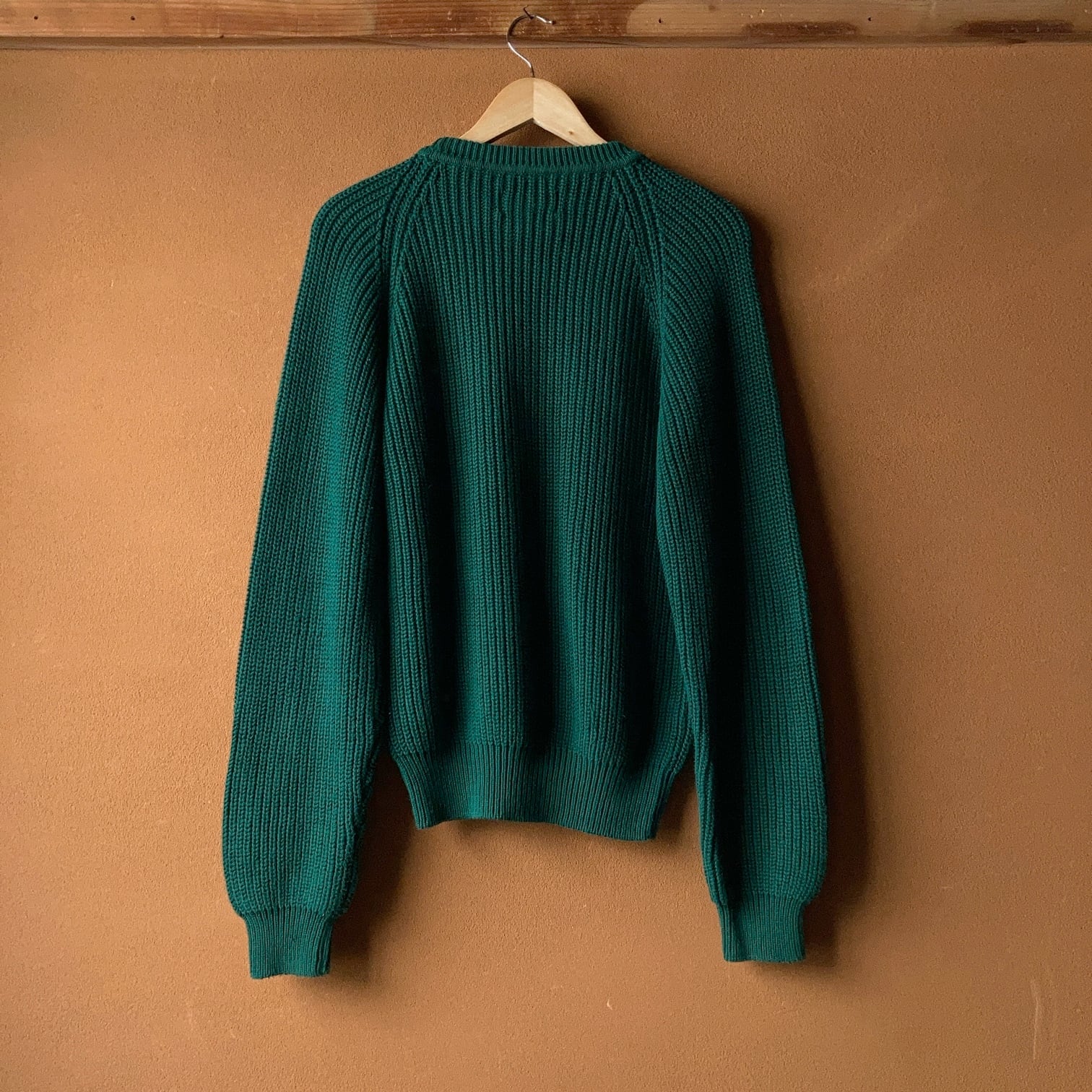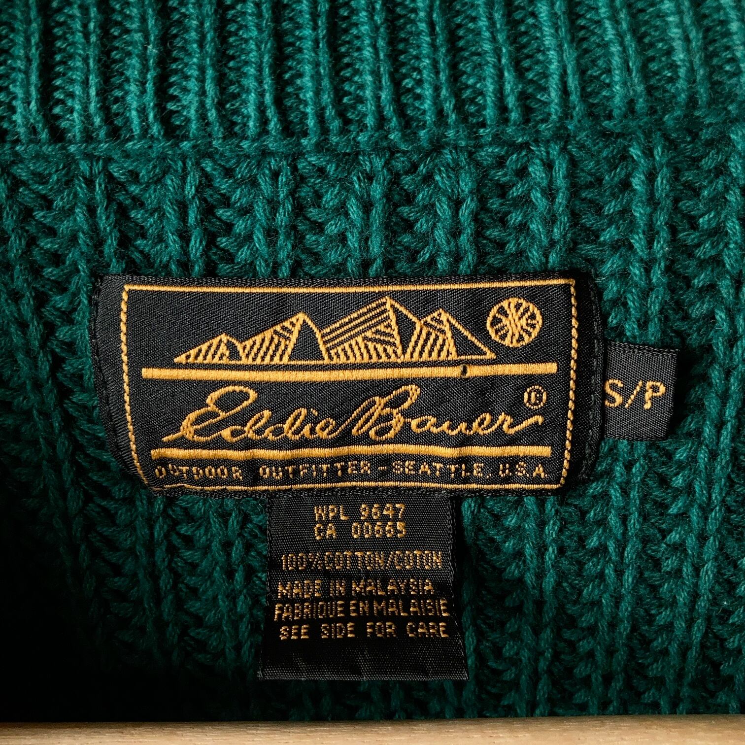 ~90's Eddie Bauer ローゲージ コットンニットセーター ブルーグリーン【0304A80】