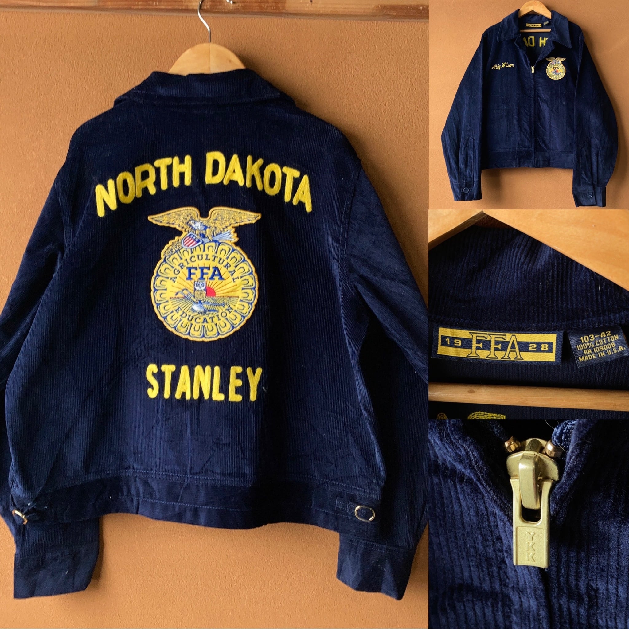 FFA(Future Farmers Agriculture)とは、アメリカの国立農業学校の作業用ジャケットのことで、地域ごとに刺繍が施されていたりしてとても面白いジャケットです。(生地はコーデュロイ)