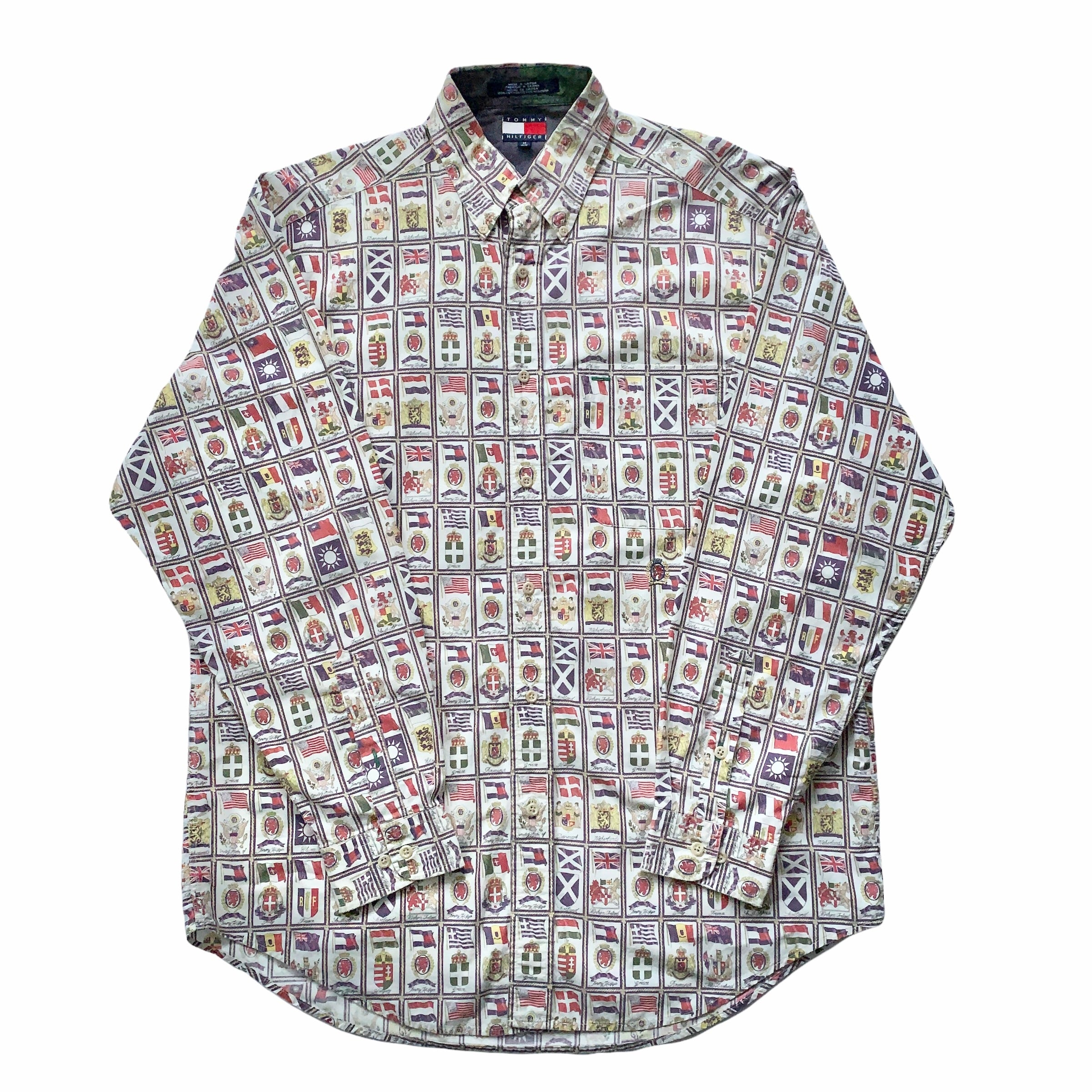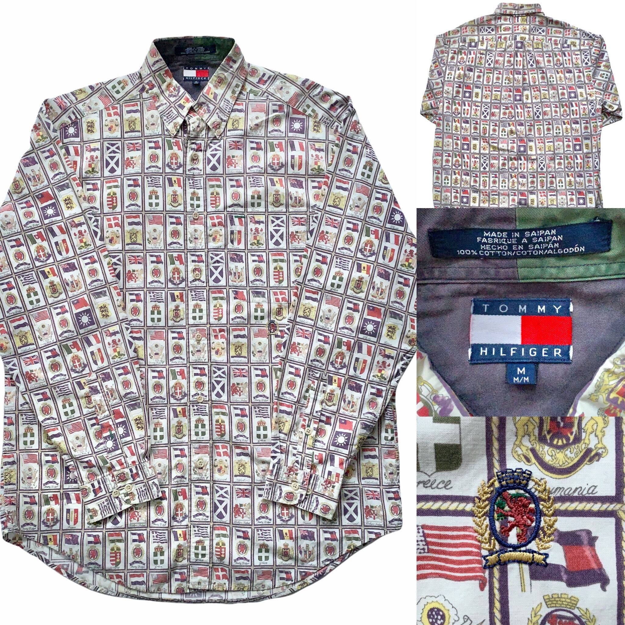TOMMY HILFIGER 総柄コットンシャツ 国旗パターン【0304A131】