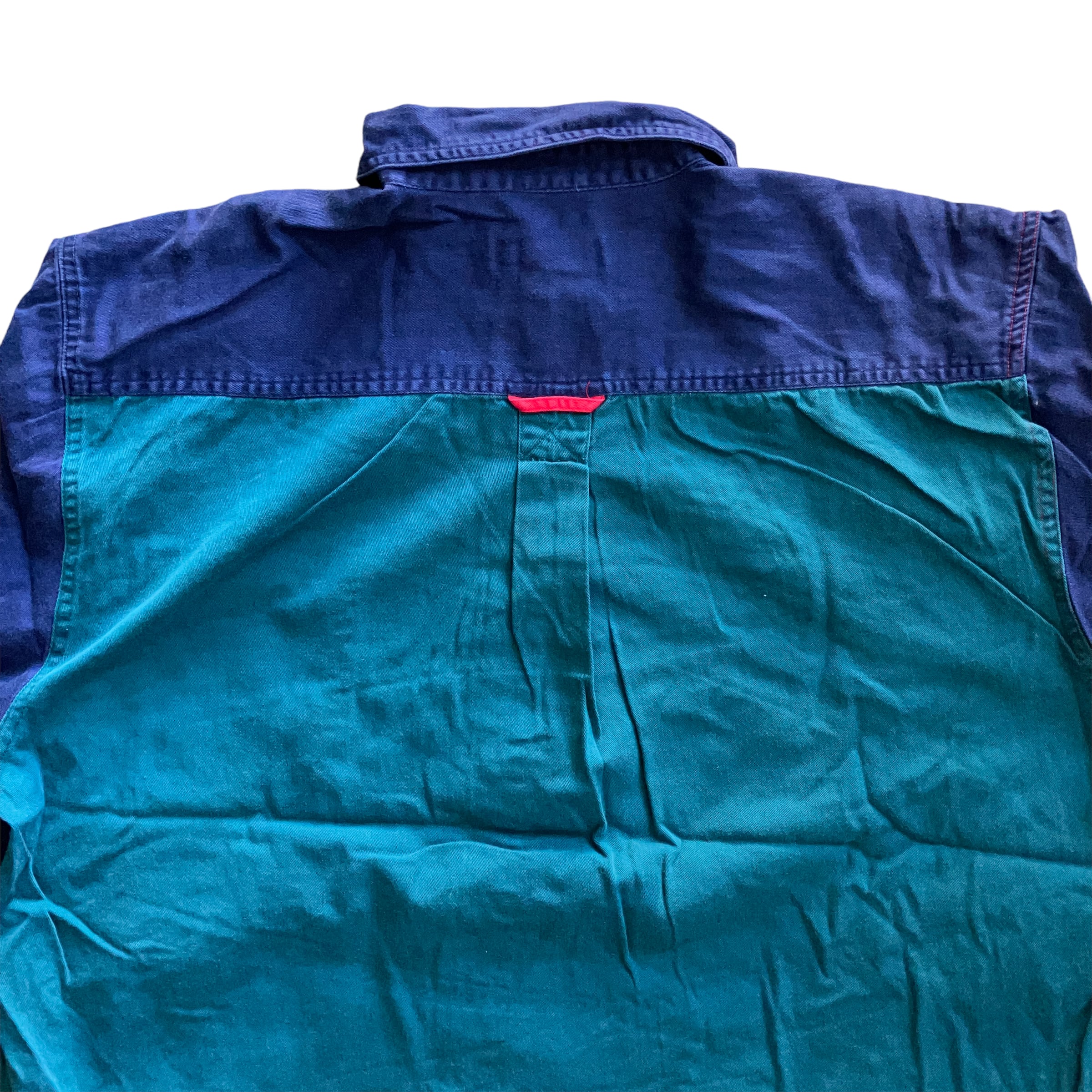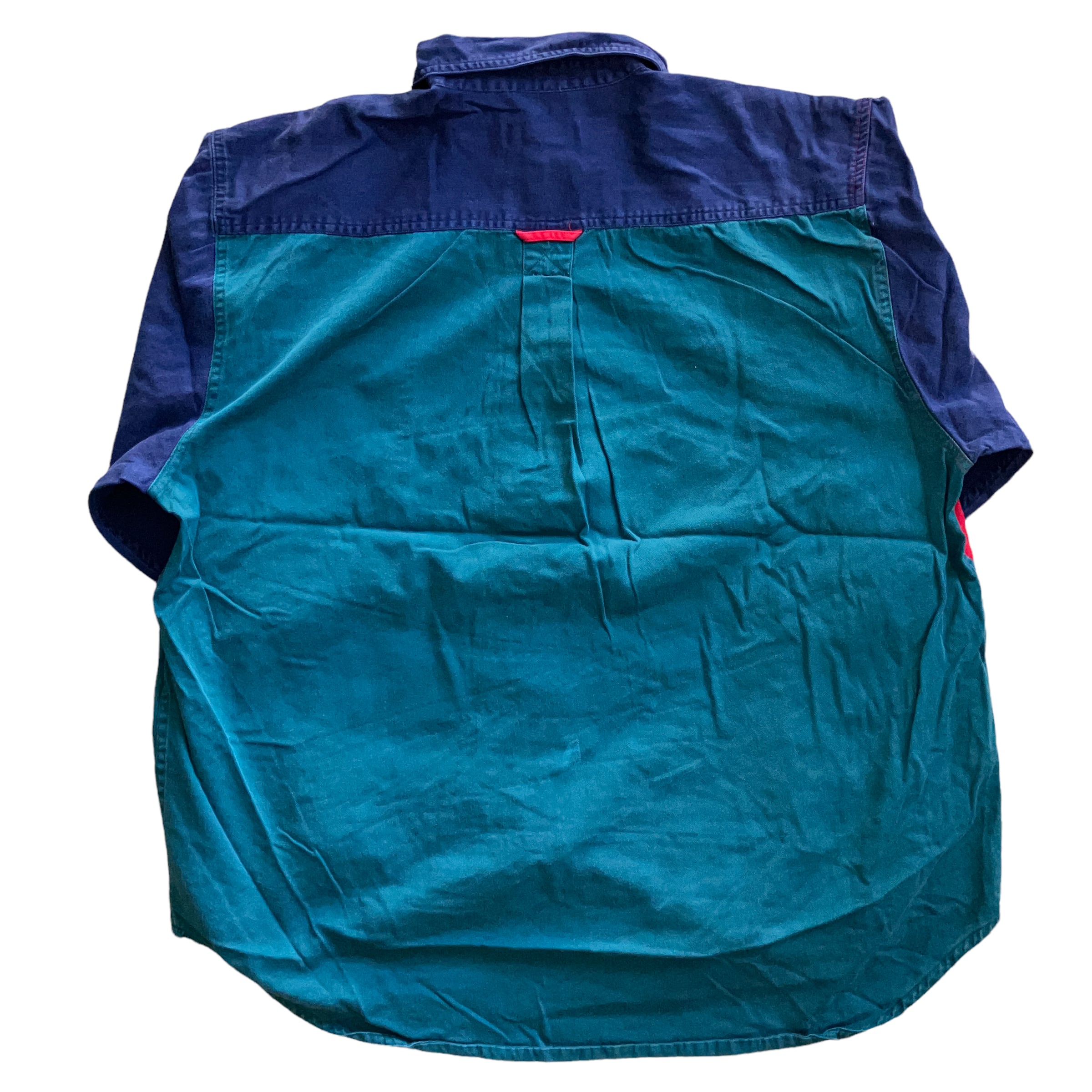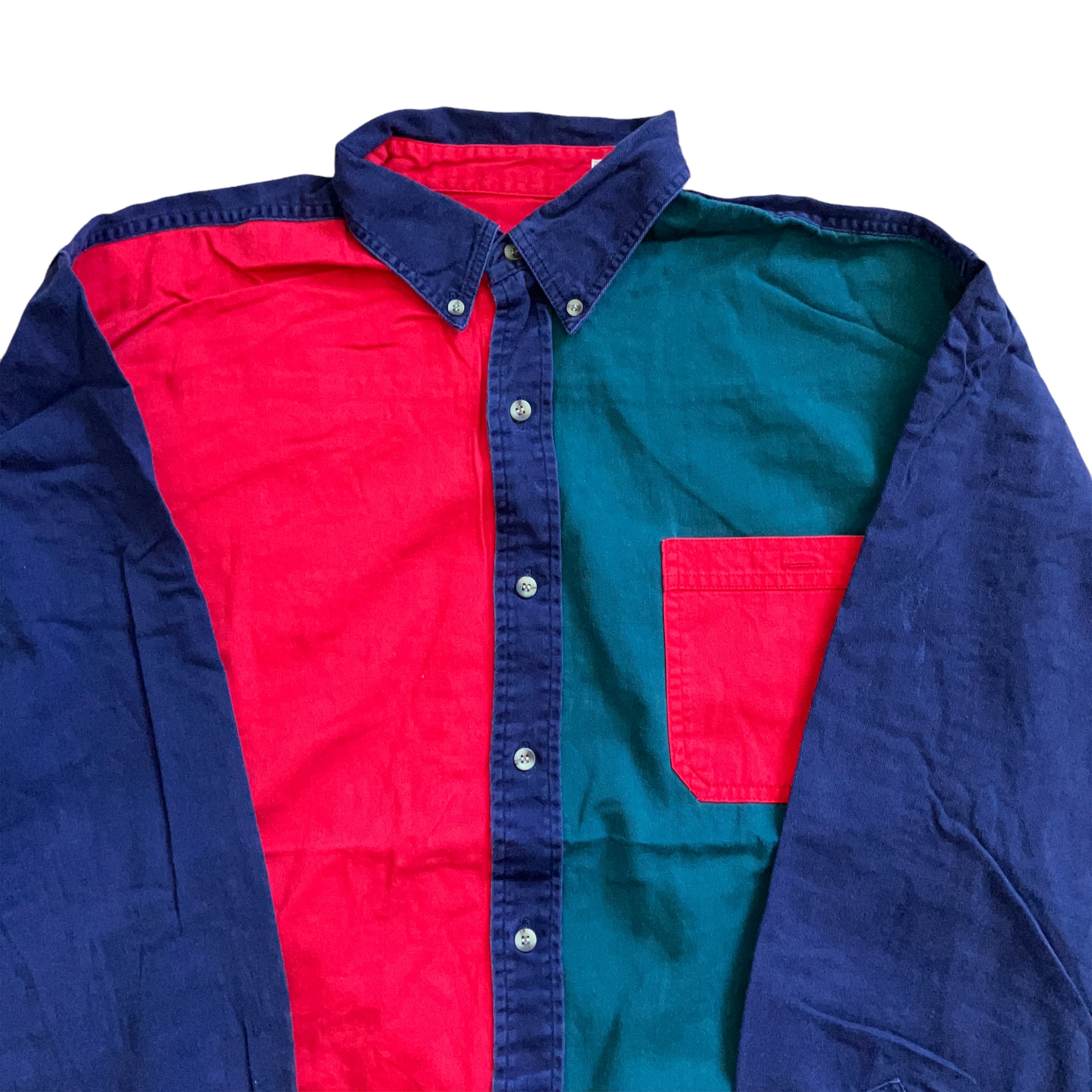 グリーン、ネイビー、レッドのマルチカラーL/Sシャツです。
