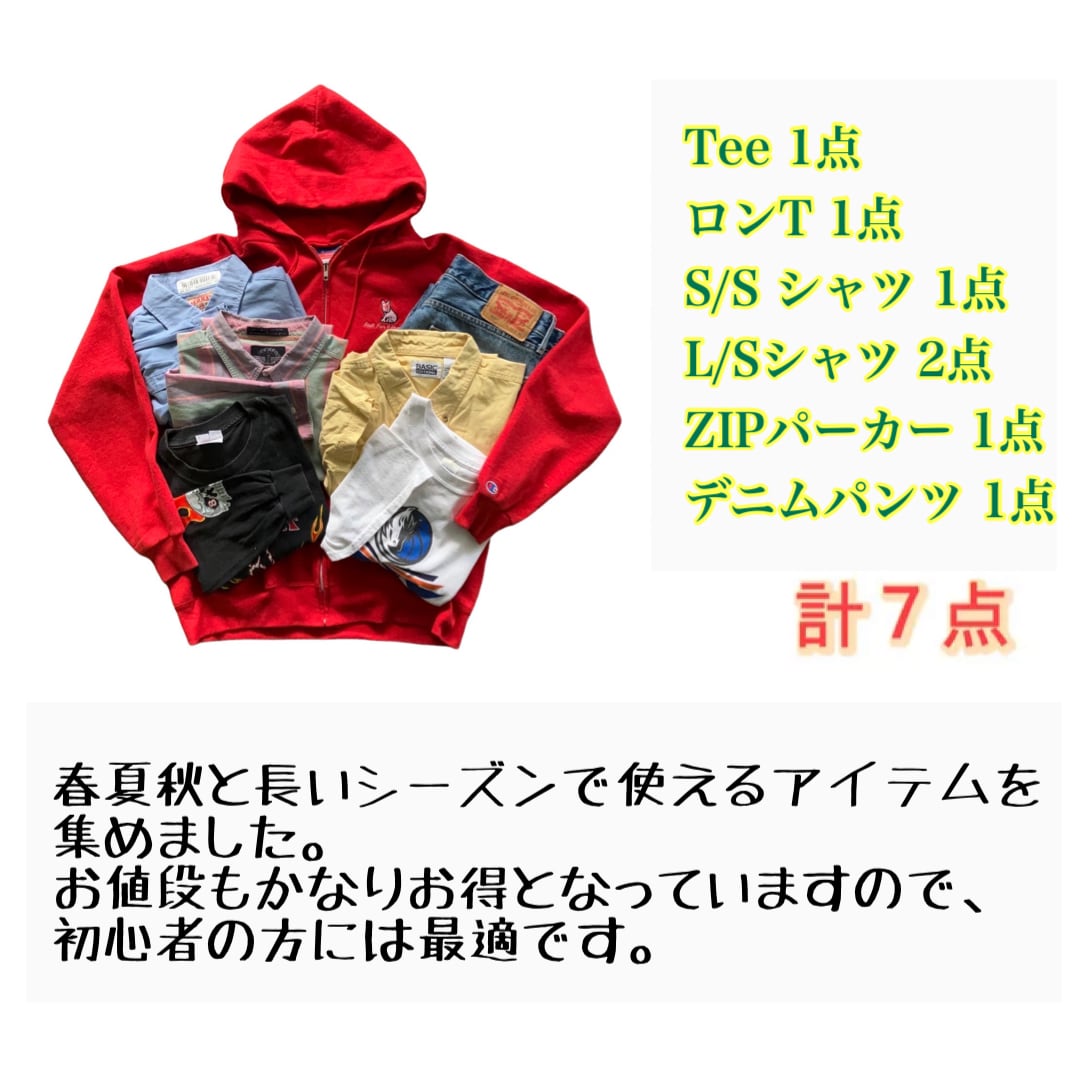 古着に挑戦したい、コスパ良く着回しできるアイテムが欲しい、コーデの組み方がわからないなど様々な方たちにもってこいのセットとなります。