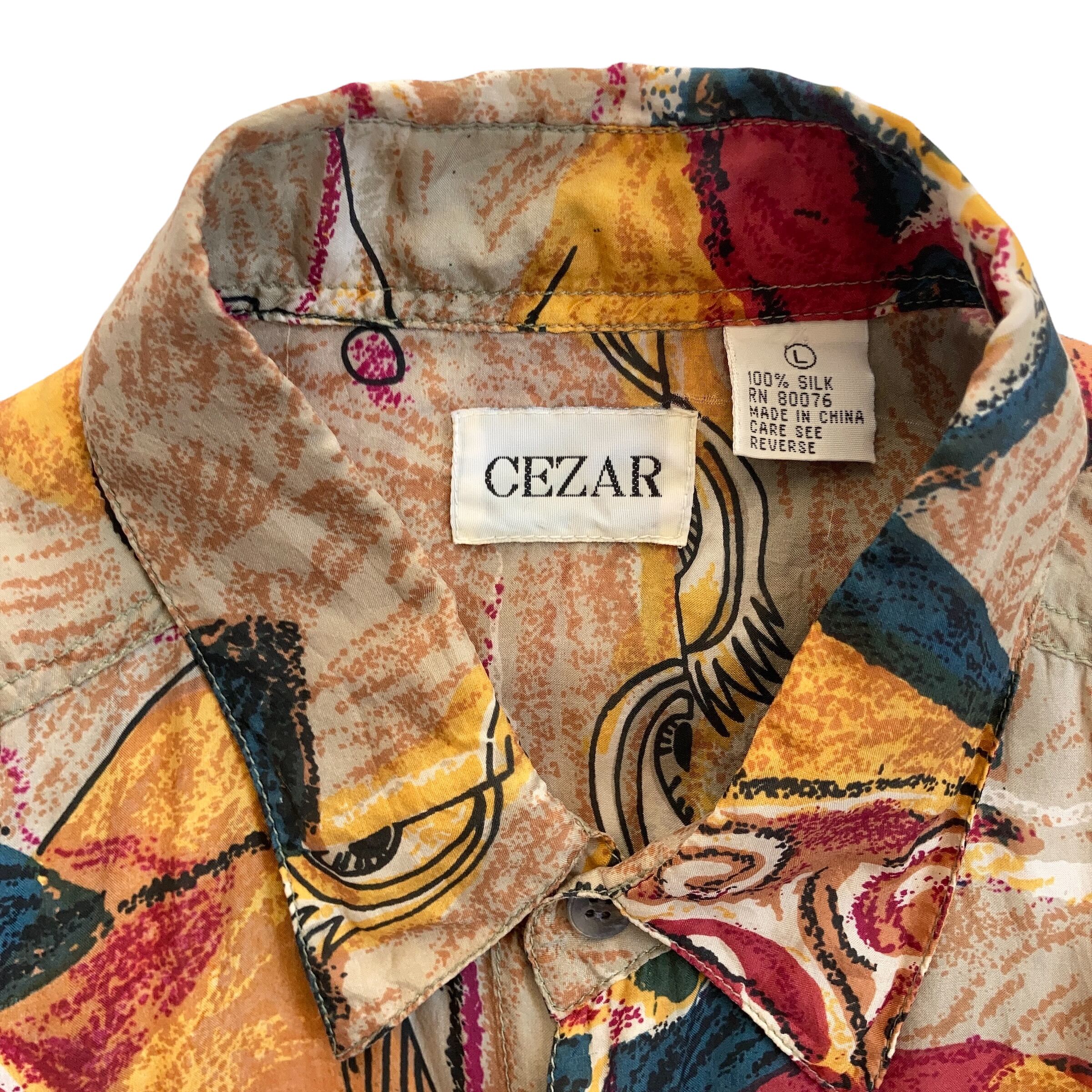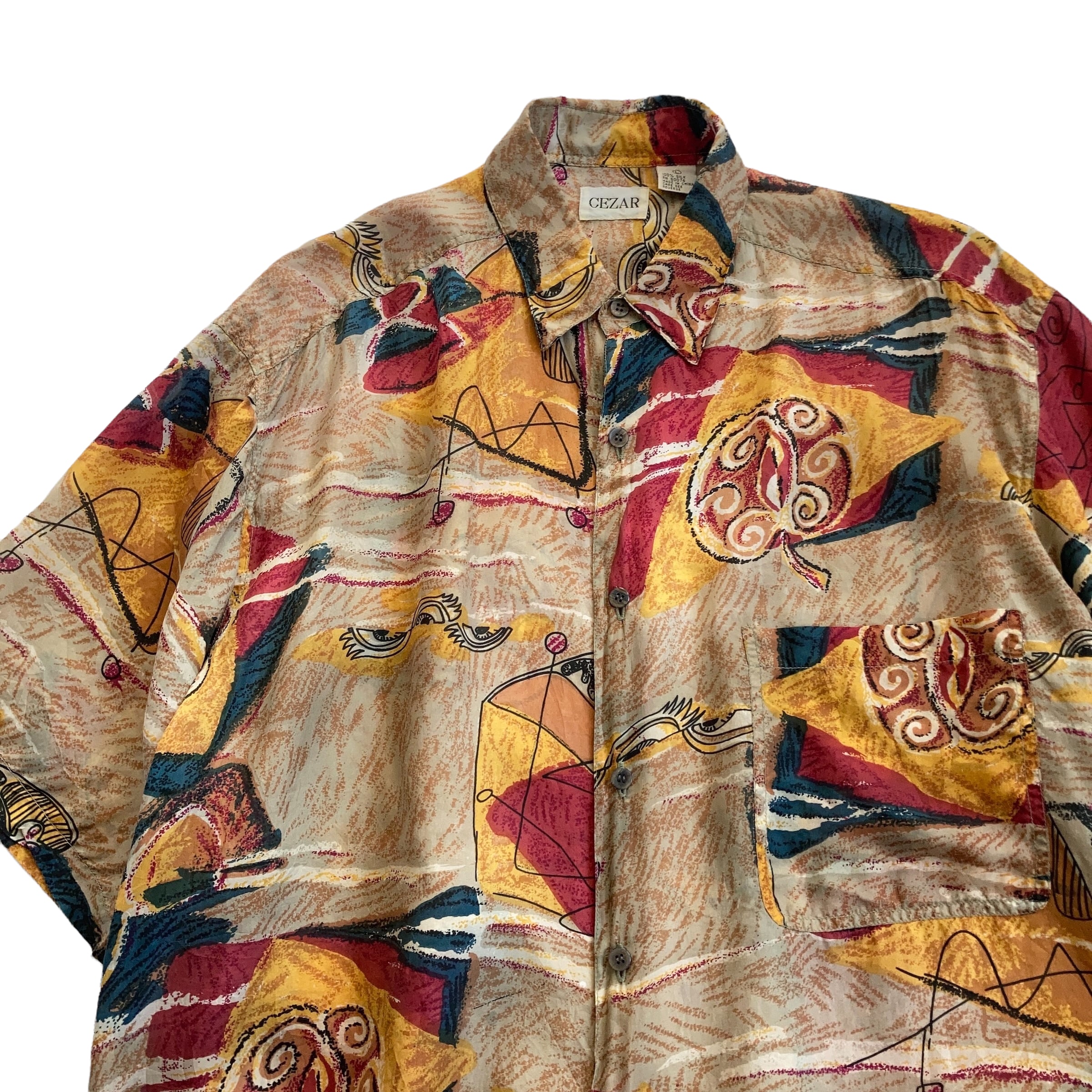 CEZAR アート柄S/Sシルクシャツ SIZE L【0501A43】【ネコポス発送可能】