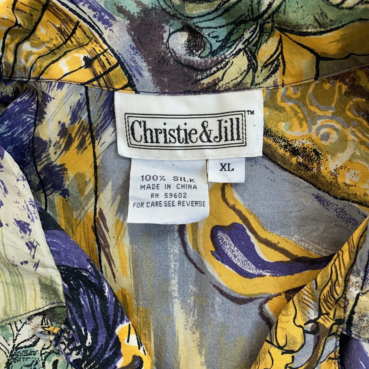 Christie&Jill アート柄 L/Sシルクシャツ SIZE L【0501A58M】【ネコポス発送可】