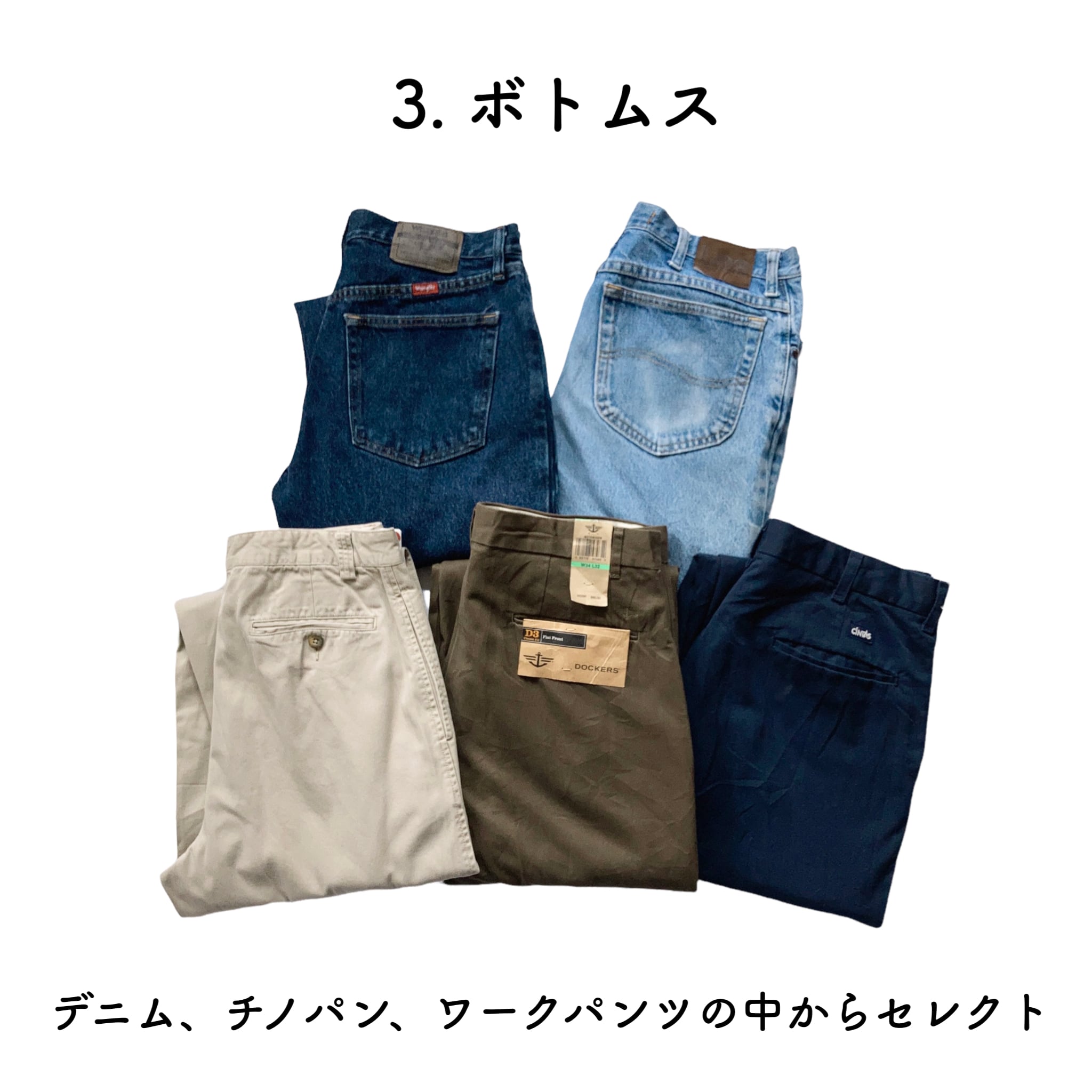 ・ボトムス(デニムパンツ、チノパン、ワークパンツの中から1点)