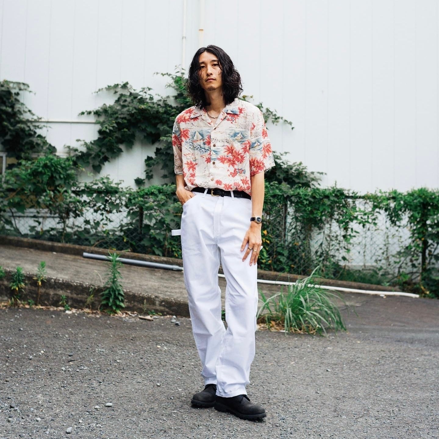 カジュアルでワーク感のあるペインターパンツでありながら清潔感のあるホワイトカラー。