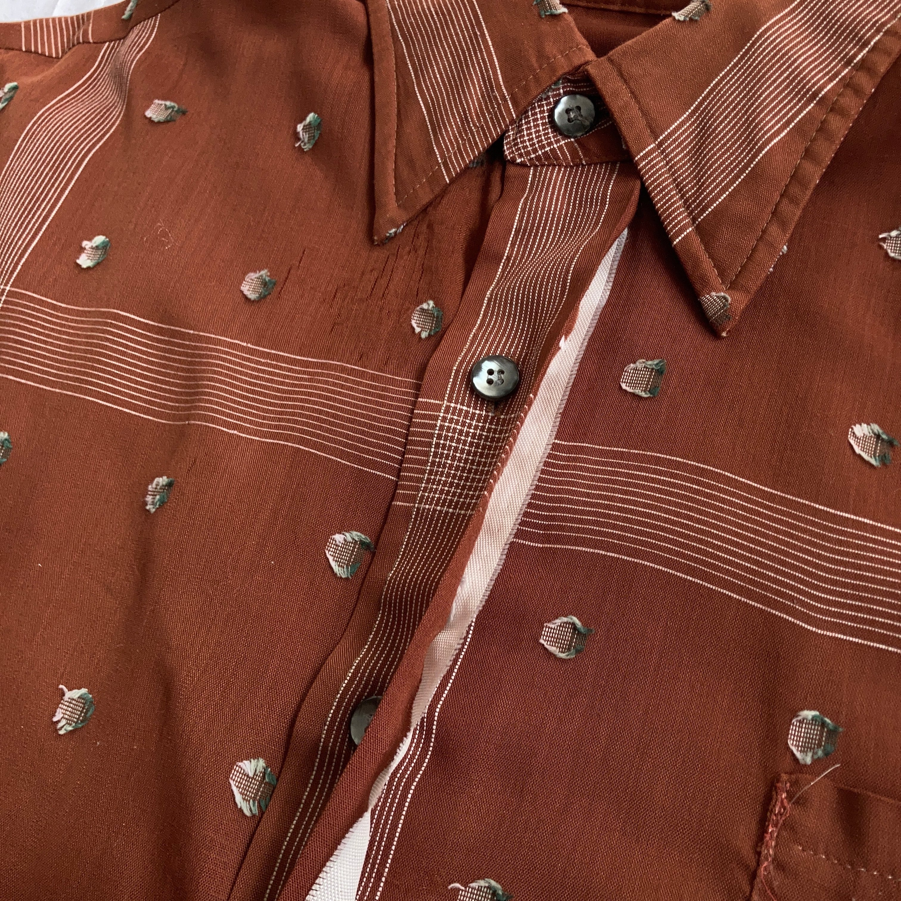 80's Vintage 総柄S/Sシャツ ブラウン【0601A14】【ネコポス発送可能】