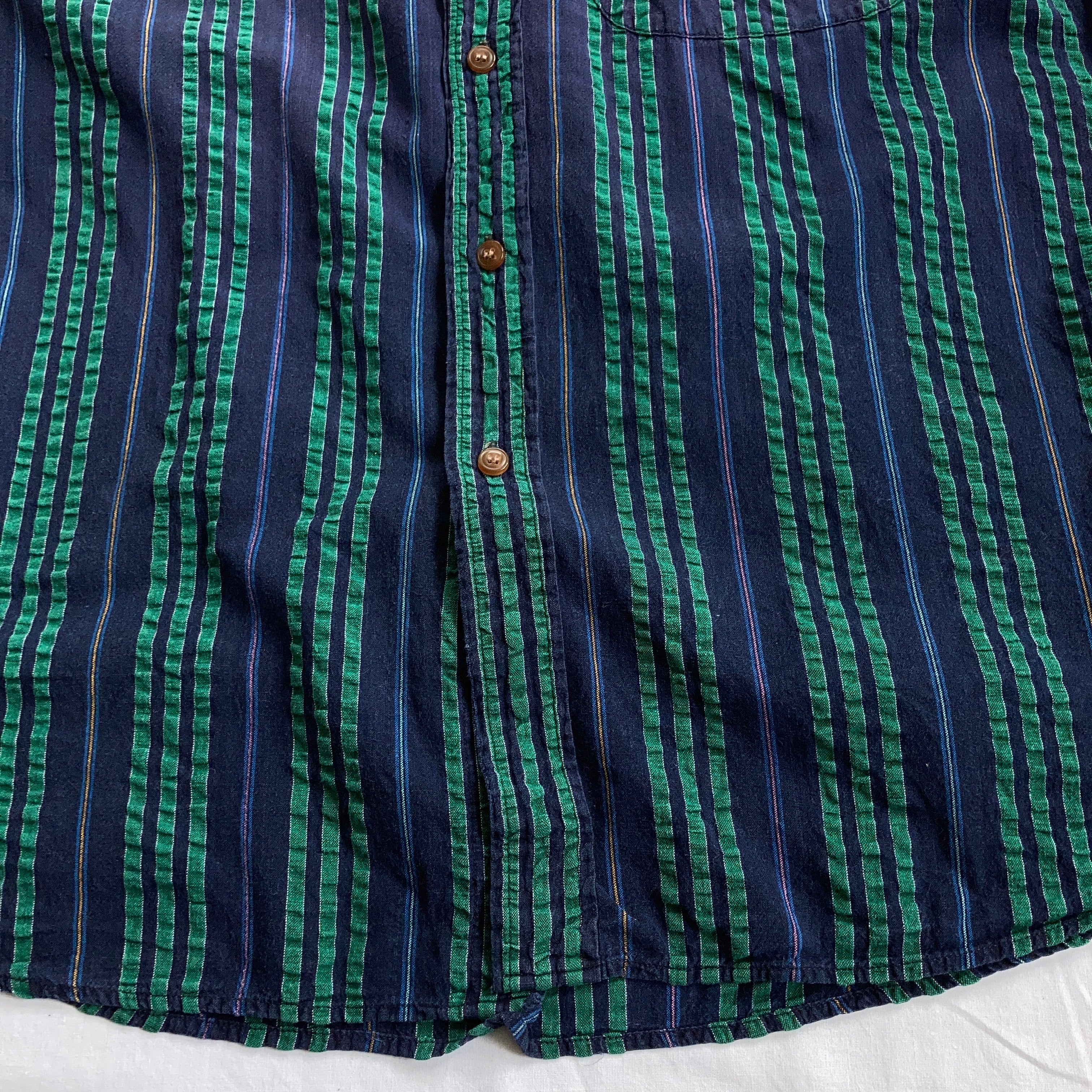 90's~ COLOURS by ALEXANDER JULIAN シアサッカー ストライプシャツ SIZE L【0601A23】【ネコポス発送可】